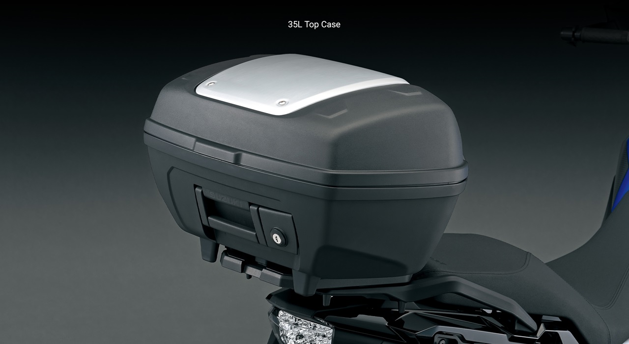 Genuine Suzuki Accessories for the V-STROM 800 include side and top cases, engine guards, center stand, low- and high-profile seats, heated hand grips, fog lamps, and more.