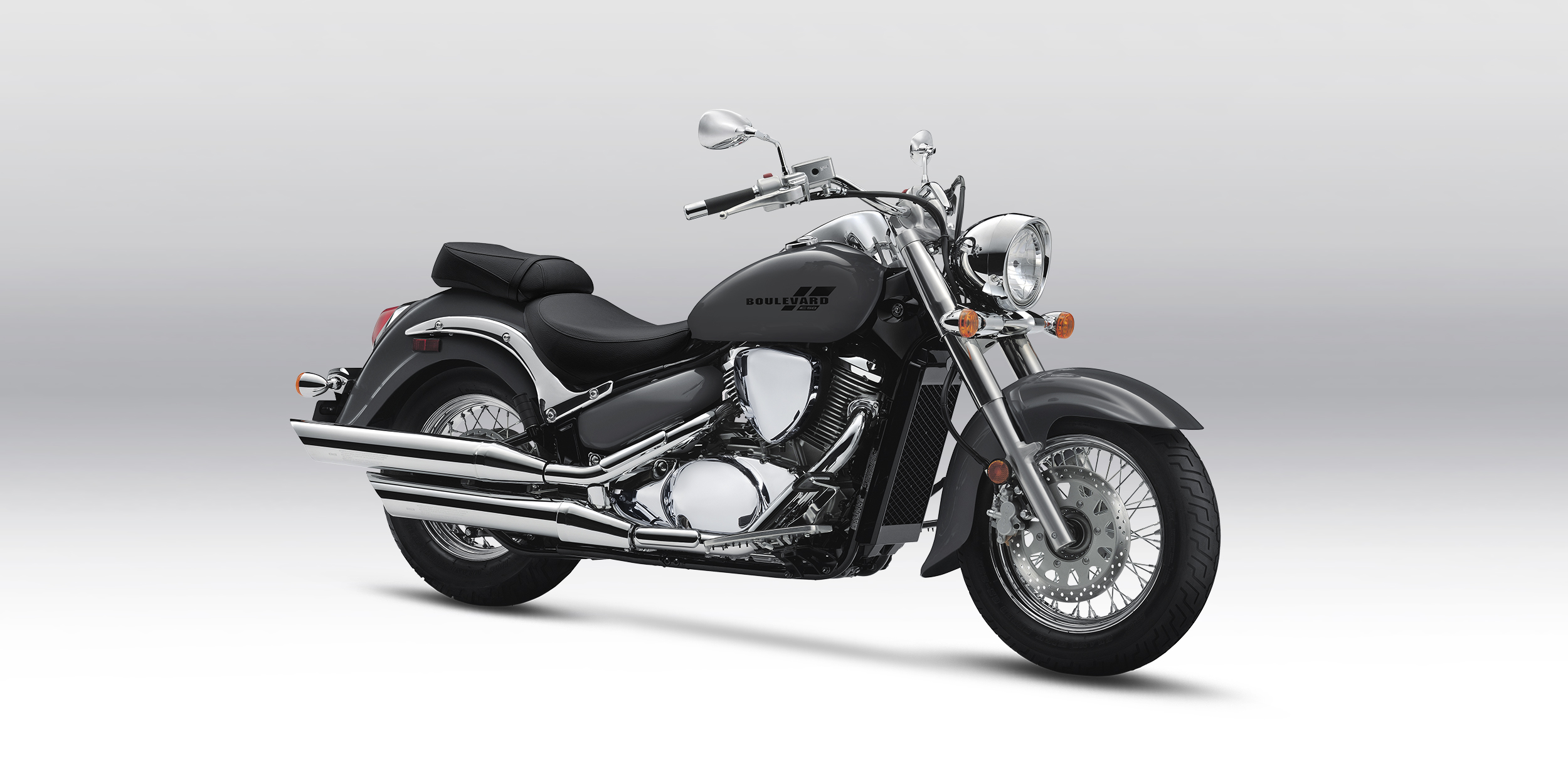 View Product BrochureSolid Iron Gray paint with understated tank graphics augment the Boulevard’s classic posture.