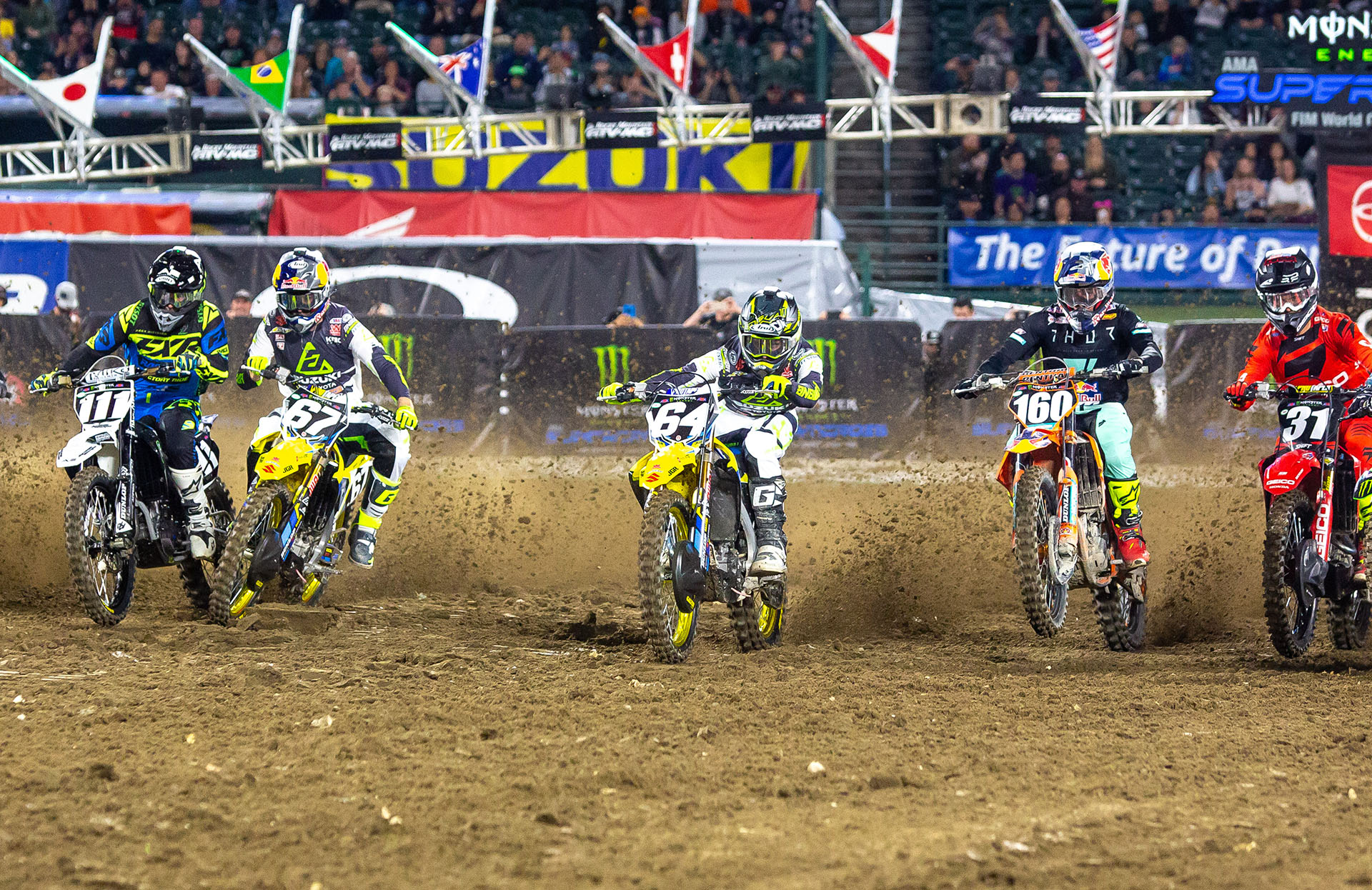 Jimmy Decotis [250 Class, 13th Place] – “Anaheim 2 was a tough round for me. I had a big crash in the second main, which put me a lap down and took me out of contention for a good overall result. I’m riding well and super comfortable on my Suzuki RM-Z250. I feel like my breakthrough ride will be coming soon. I love the dirt in Oakland, so I’m excited to get some redemption this next weekend. Thanks to my whole crew and all of the mechanics for working so hard on my bike with the short turnaround between main events!”