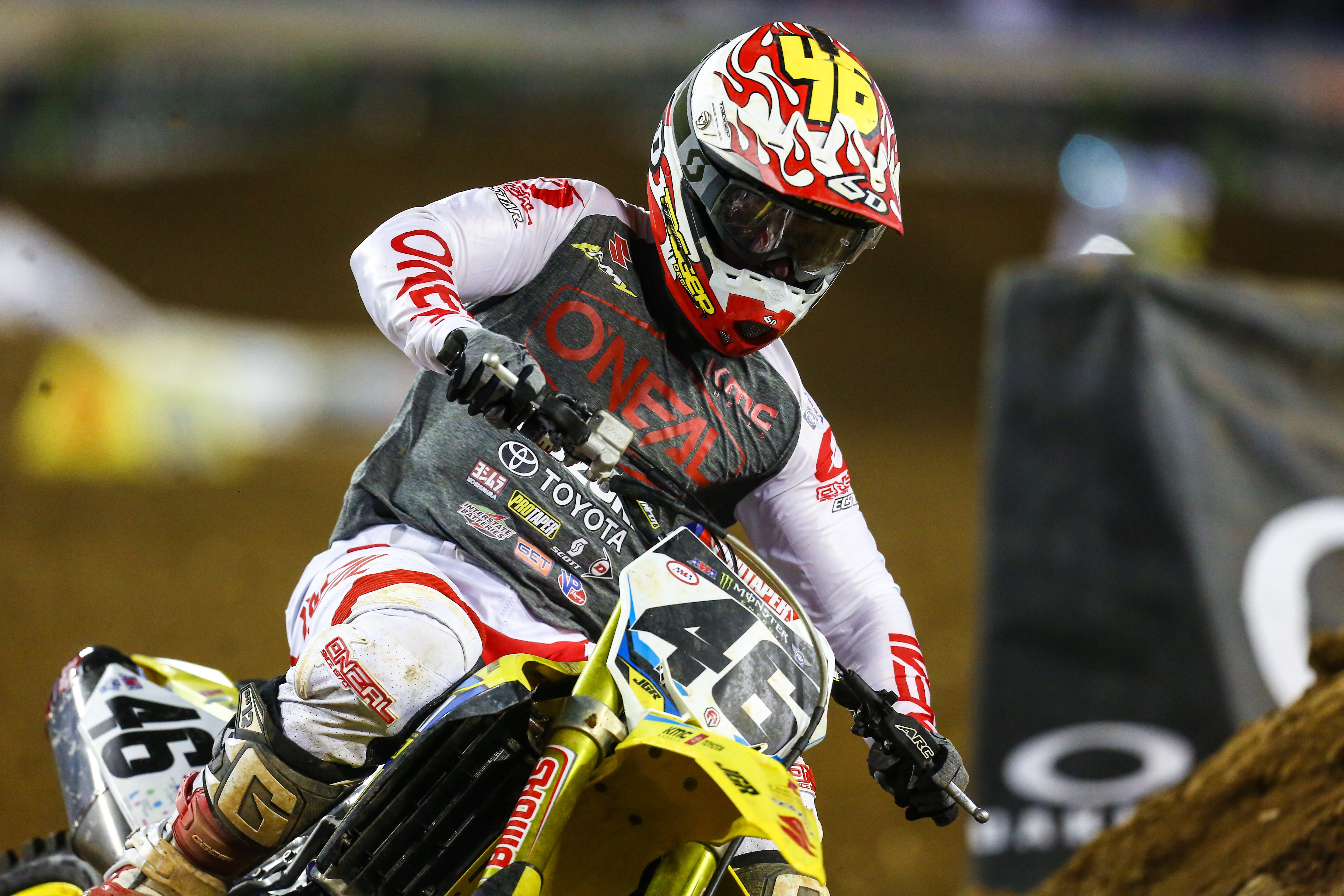 Brea, CA (April 8, 2019) - The JGRMX/Yoshimura/Suzuki Factory Racing Team was in Nashville, Tennessee this past weekend for round 14 of the 2019 Monster Energy Supercross Championship and the seventh stop of the 250 Eastern Regional Supercross Series. Suzuki RM-Z250 rider Kyle Peters earned his first top-five finish of the series and moved up in the points standings. Teammate Alex Martin rode through adversity to score his sixth top-ten finish in seven rounds. Suzuki RM-Z450 rider Justin Hill was hampered by an injury suffered in practice and had to end the night early.