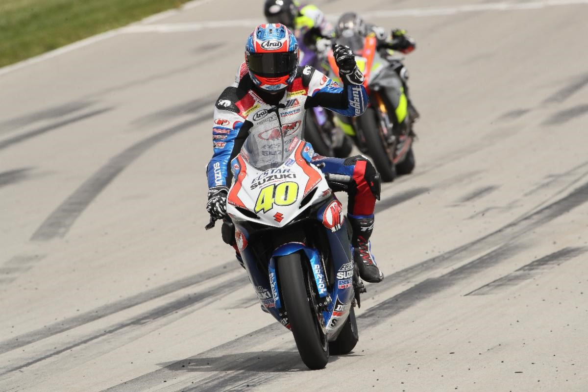 Brea, CA (August 26, 2019) - In conjunction with Yoshimura Suzuki’s Toni Elias’ race two victory, Team Hammer celebrated monumental back-to-back victories from M4 ECSTAR Suzuki’s Sean Dylan Kelly and Roadracing World Young Guns Suzuki’s Alex Dumas during the 2019 MotoAmerica Roadrace at Pittsburgh International Race Complex this past weekend.