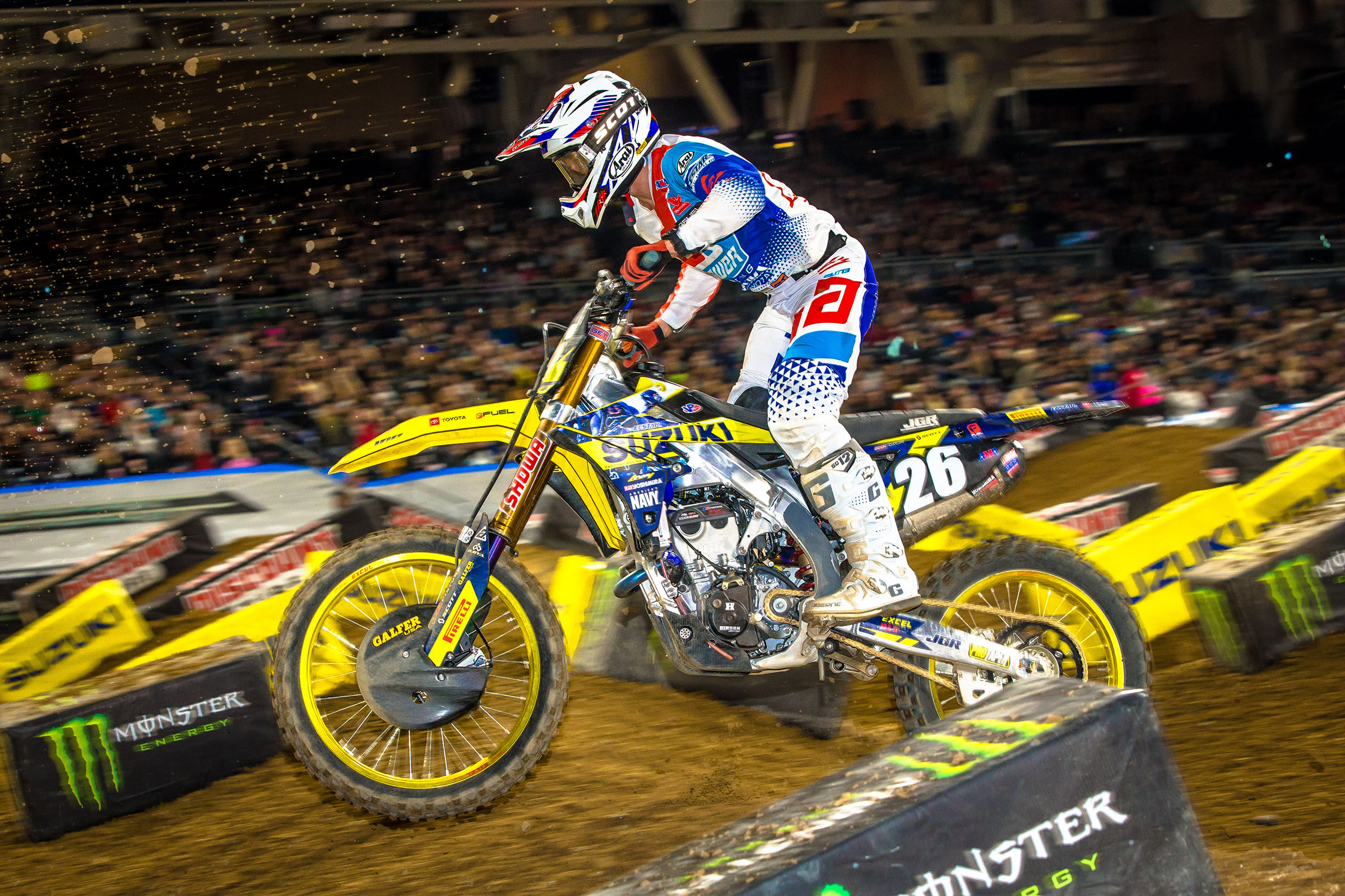 "The San Diego round was a cool opportunity to honor the military and run some special graphics with a NAVY theme," added Jeremy Albrecht, Team Manager. "Alex had speed in the whoops this weekend but had some crashes that made it tough. Alex still has more races after the break to get the JGR Suzuki on the podium."