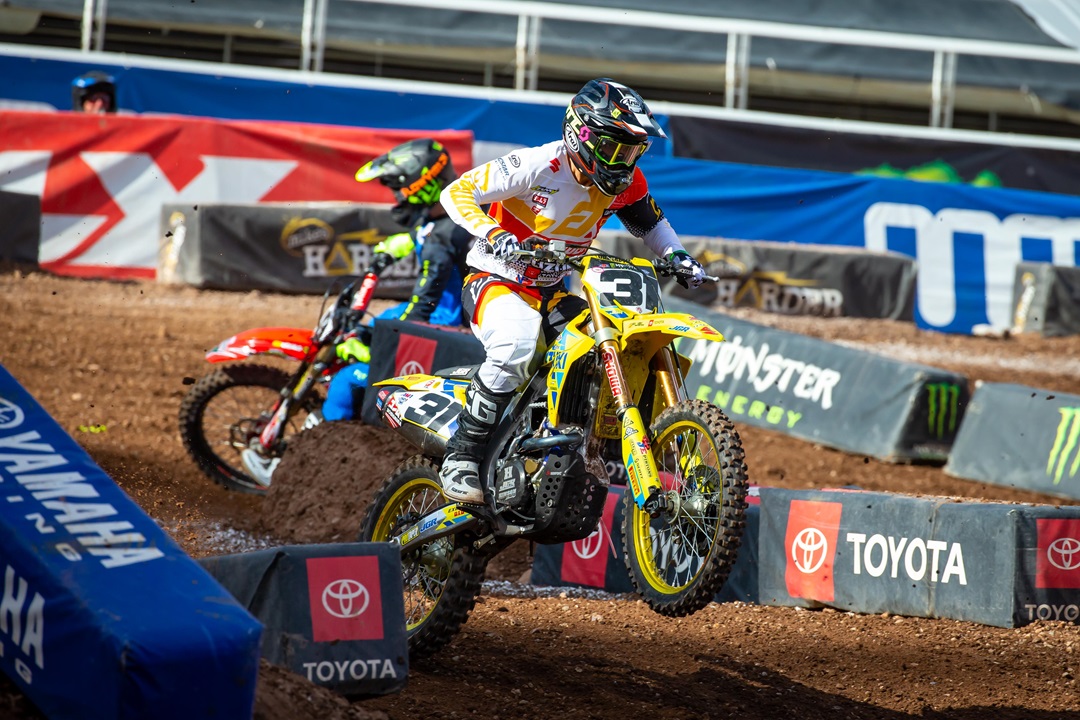 After missing a direct transfer by one spot in his heat race, Tickle pulled a holeshot in the LCQ and brought his JGR-tuned RM-Z450 in with a second-place finish. In the main, Tickle recovered from a disappointing jump off the gate and charged toward a top-ten position but had to settle for a 12th place finish, which is a step forward in Tickle's progress after a mid-season hand injury.