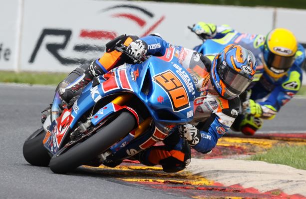 Bobby Fong (#50) shows impressive speed on his Suzuki GSX-R1000 in Race 1.