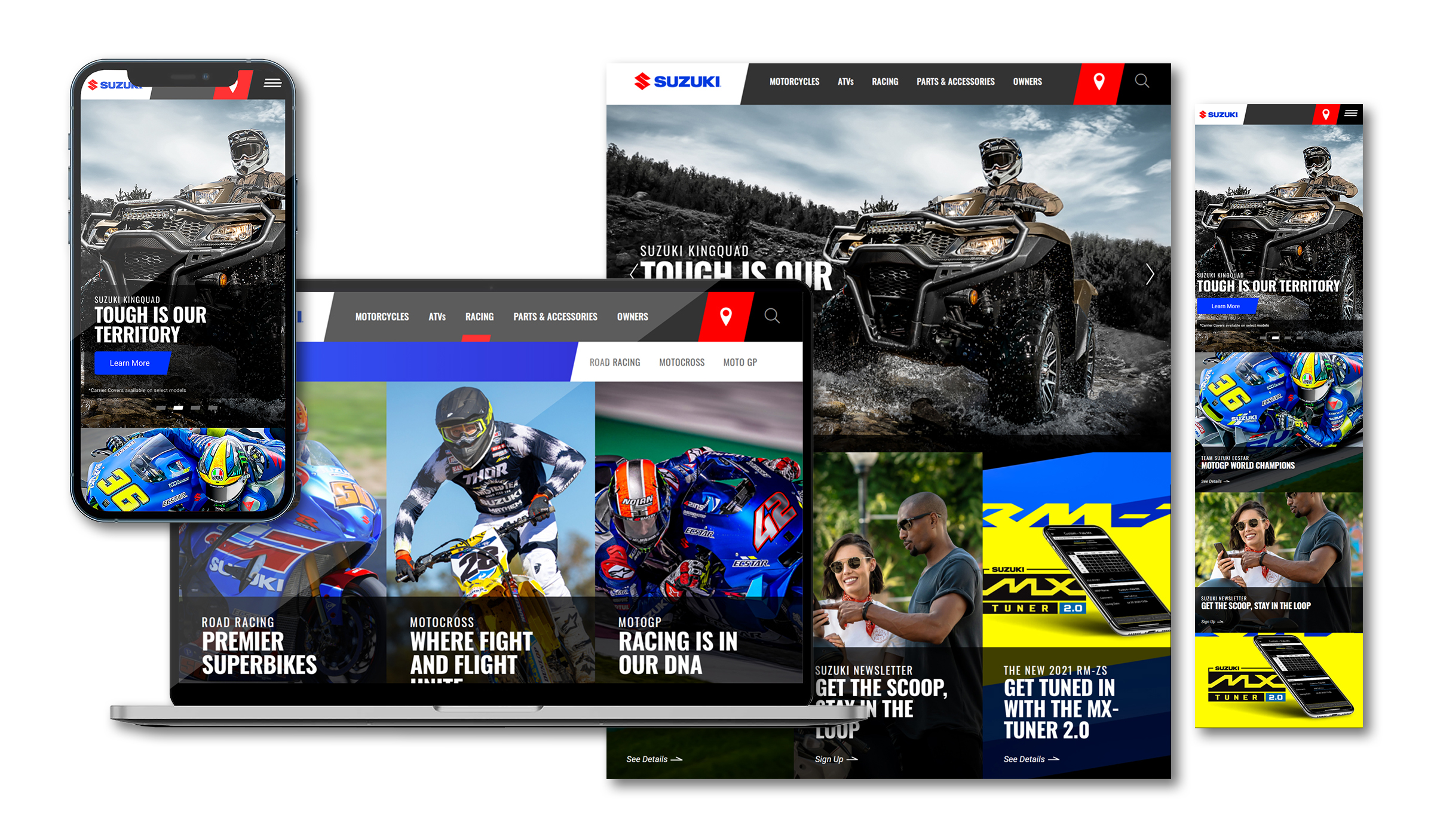 “We are very excited to launch this brand new website,” said Kerry Graeber, Vice President MC/ATV Sales and Marketing. “The new SuzukiCycles.com delivers a fresh, new, and more dynamic site that not only provides information, but also gives consumers a rich and engaging experience on everything about Suzuki motorcycles and ATVs.”