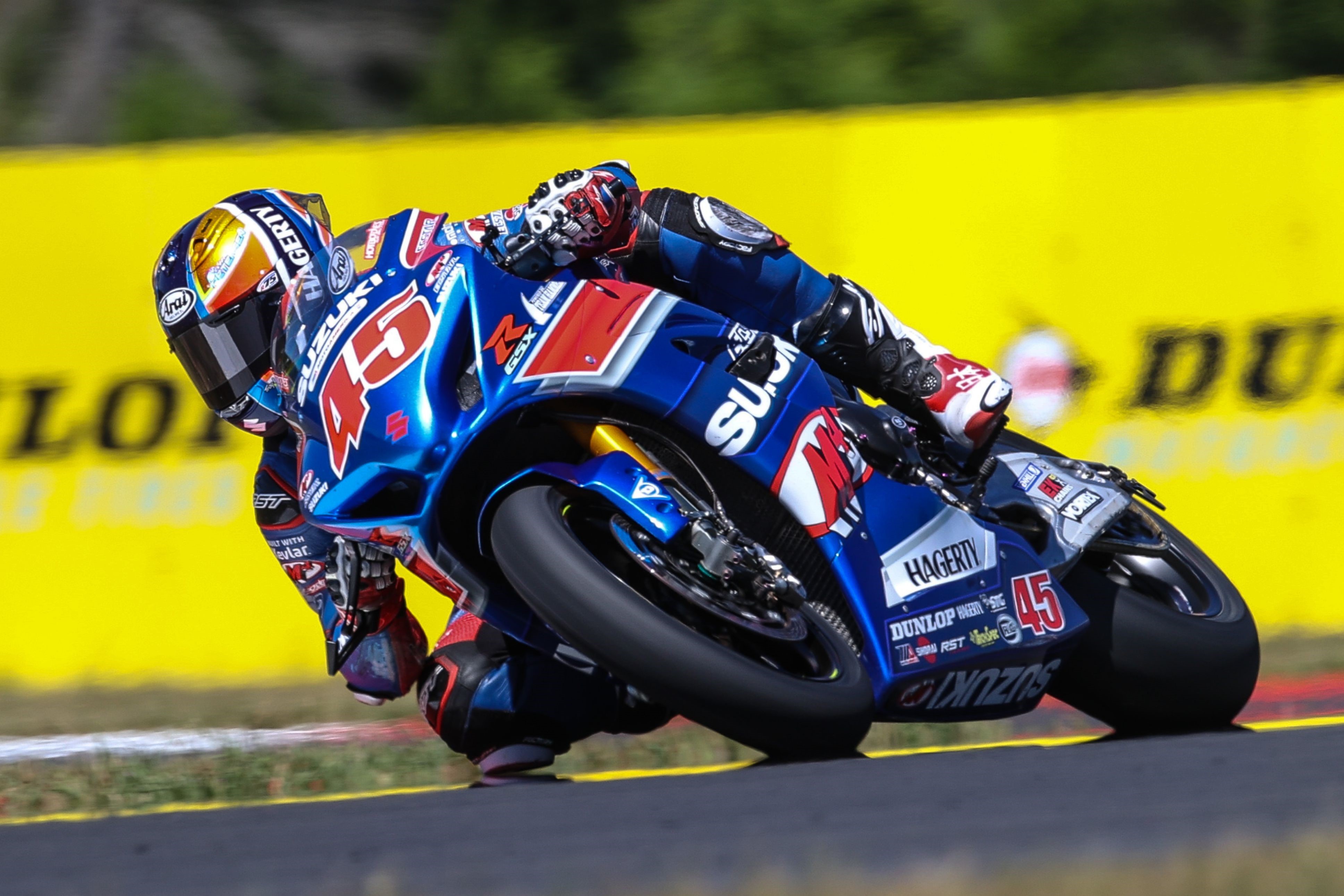 Cam Petersen (45) earned an impressive third straight Superbike podium finish on his GSX-R1000.