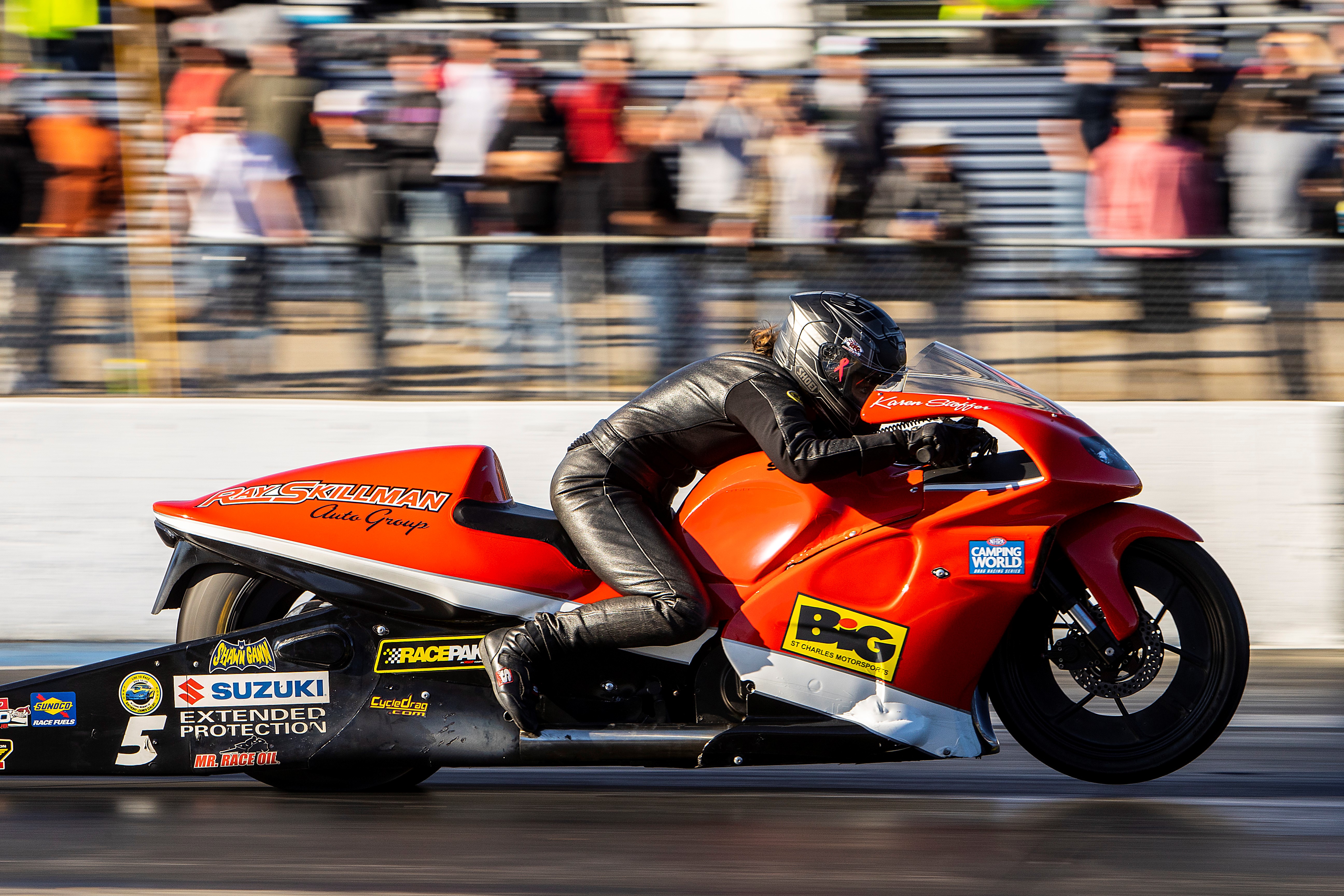 For Sampey, the Gatornationals marked a return to her roots as a Suzuki-sponsored rider. Sampey spun the tire off the line resulting in an 8.30-second/105 mph first-round loss to Marc Ingwersen, but the three-time class champion was elated to be back in action with the motorcycle brand where she has spent most of her storied career.