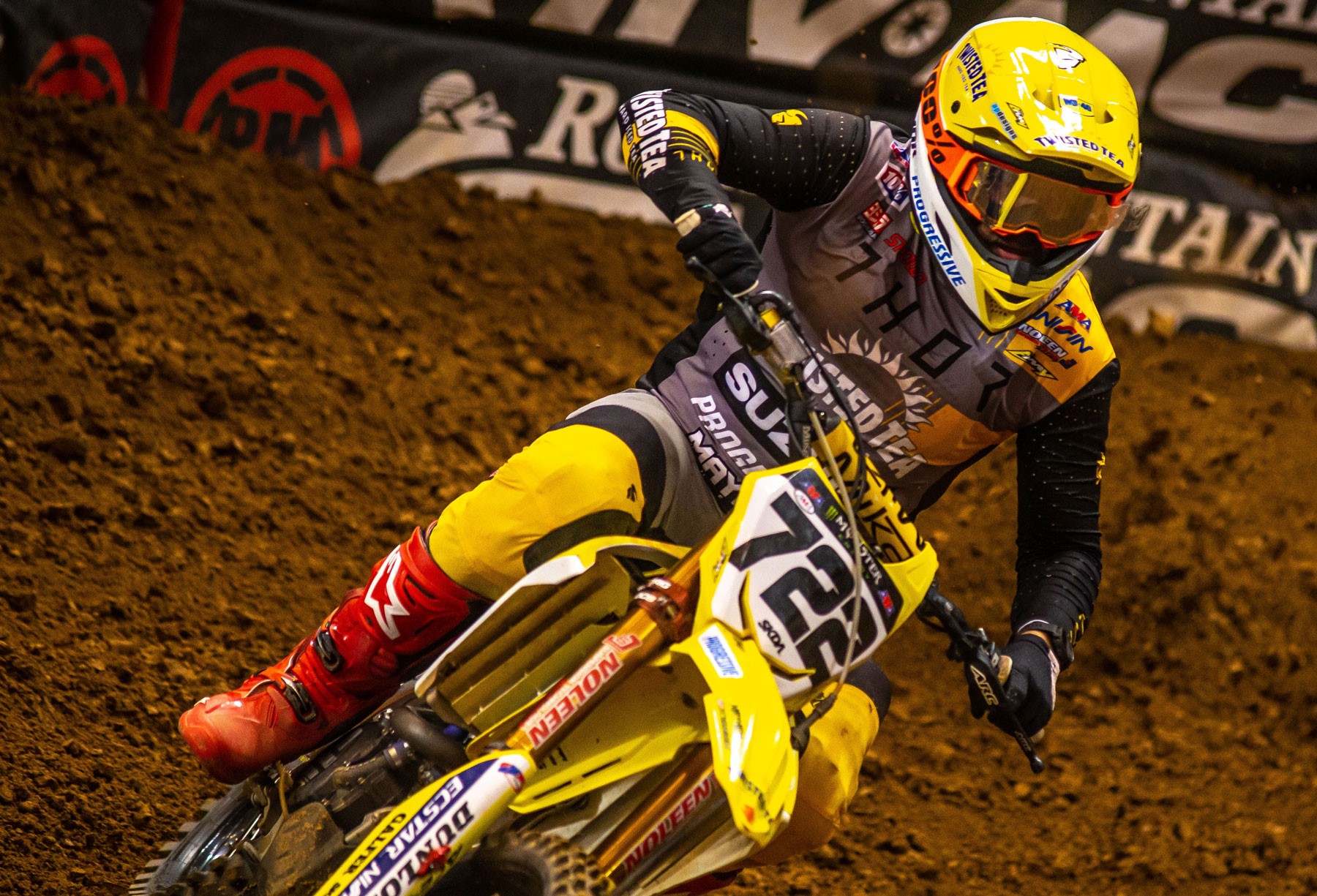 "It was great racing in St. Louis tonight," remarked Twisted Tea/H.E.P. Motorsports/Suzuki Presented by Progressive Insurance Team Manager Dustin Pipes. "All three riders had solid, consistent main events with the exception of Justin falling twice in the first one. But I liked the way he rebounded for a top ten finish. The dirt was great, our bikes looked planted, and the fan support was awesome. We're looking forward to finishing out the season strong over the next month."