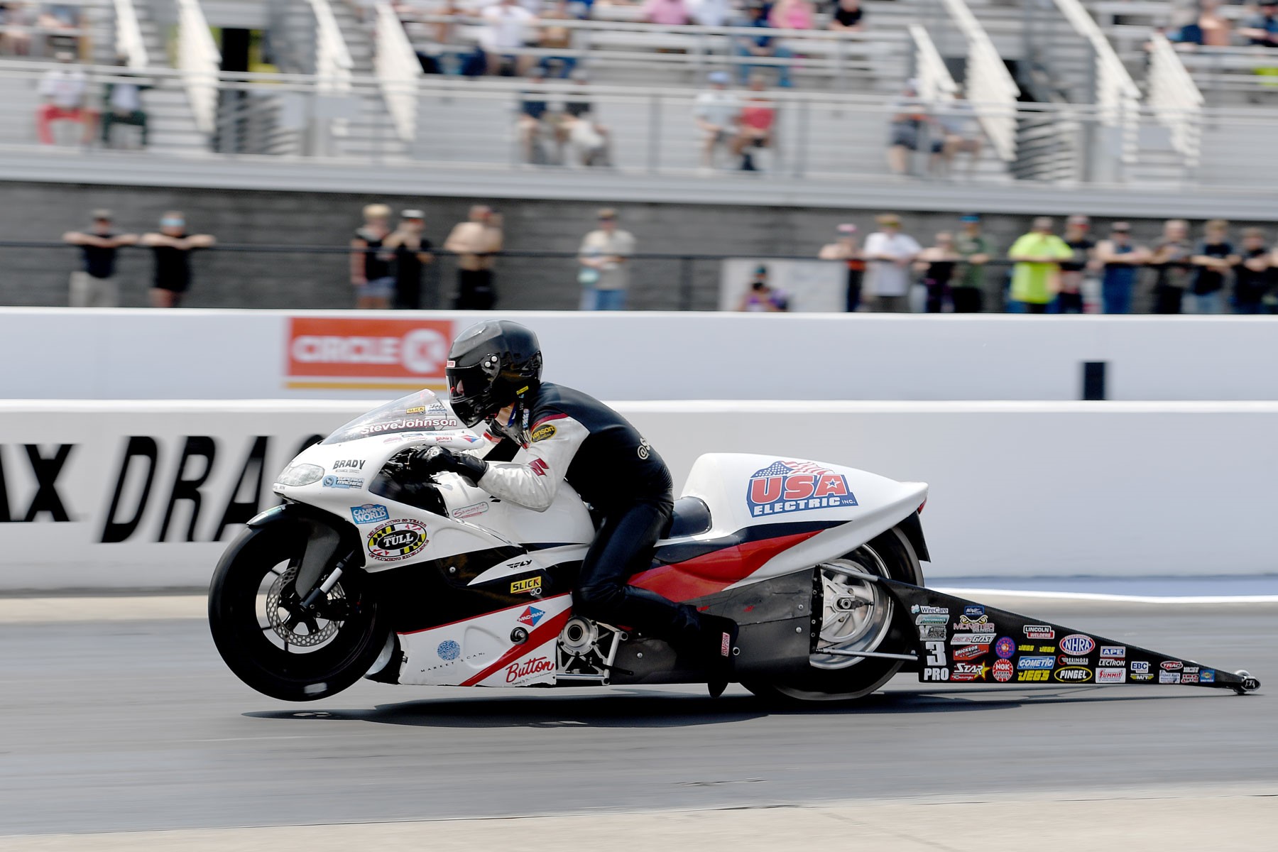 Back-to-back final victories for Steve Johnson (3) aboard his Suzuki drag bike.