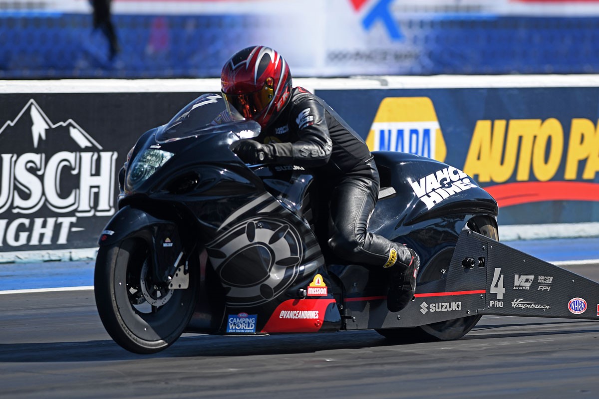Vance & Hines/Mission Suzuki Team Races to Pro Stock Motorcycle Semi-Finals at NHRA Midwest Nationals