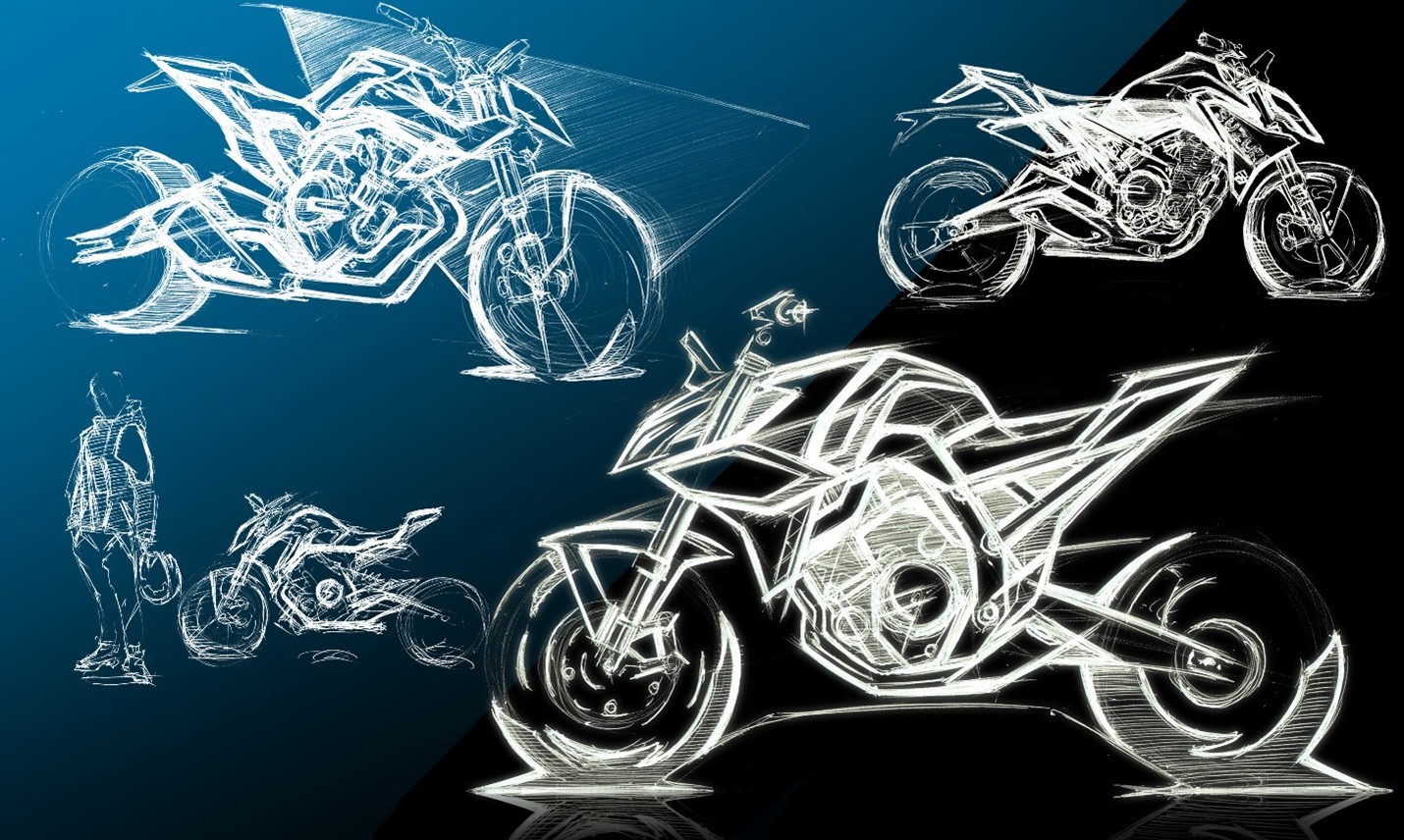 - “Visual Structure” reflects the goal of exposing the bike’s functional parts, painting them in the new body colors, and simplifying the bodywork and graphics to put a spotlight on the visceral appeal of its structural elements.
