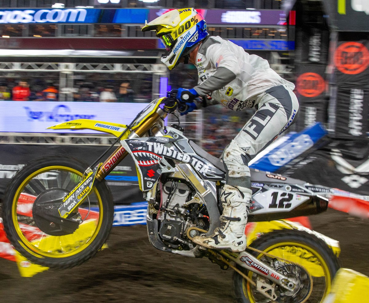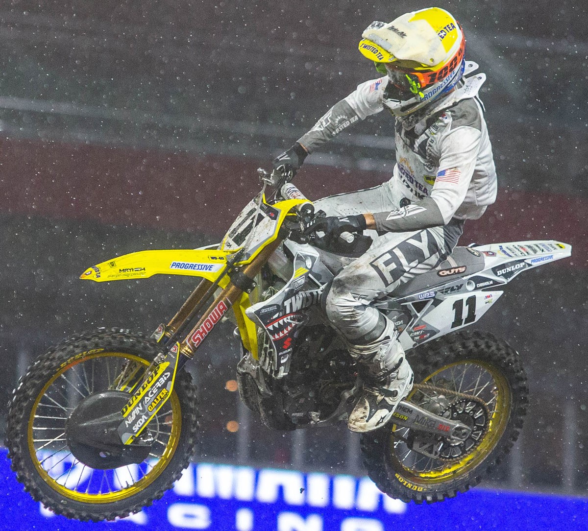 "The night was good here in Tampa," summarized Twisted Tea/H.E.P. Motorsports/Suzuki presented by Progressive Insurance Team Manager Larry Brooks. "Roczen and the team struggled with the bike set-up a little bit all day. We were in a better position for the main event, and he finished fourth. He rode really well. He's a racer, so he just put all the set-up adjustment questions for the main event behind him and put the Suzuki in fourth position. Chisholm and McElrath did okay in the main. They had bad starts and Chisholm had an arm pump problem. Weltin had a little bit of a debacle in the first heat race, then again in the last chance where he had a run-in with another rider in the very last corner. He was in a qualifying spot, and it just put him out. But he's getting much better at qualifying. He was off for a long time with a knee injury so he's trying to catch up and he's obviously improving more every week. With Roczen we missed the box by one position, so we'll come back to Oakland next weekend, and we'll finish better."