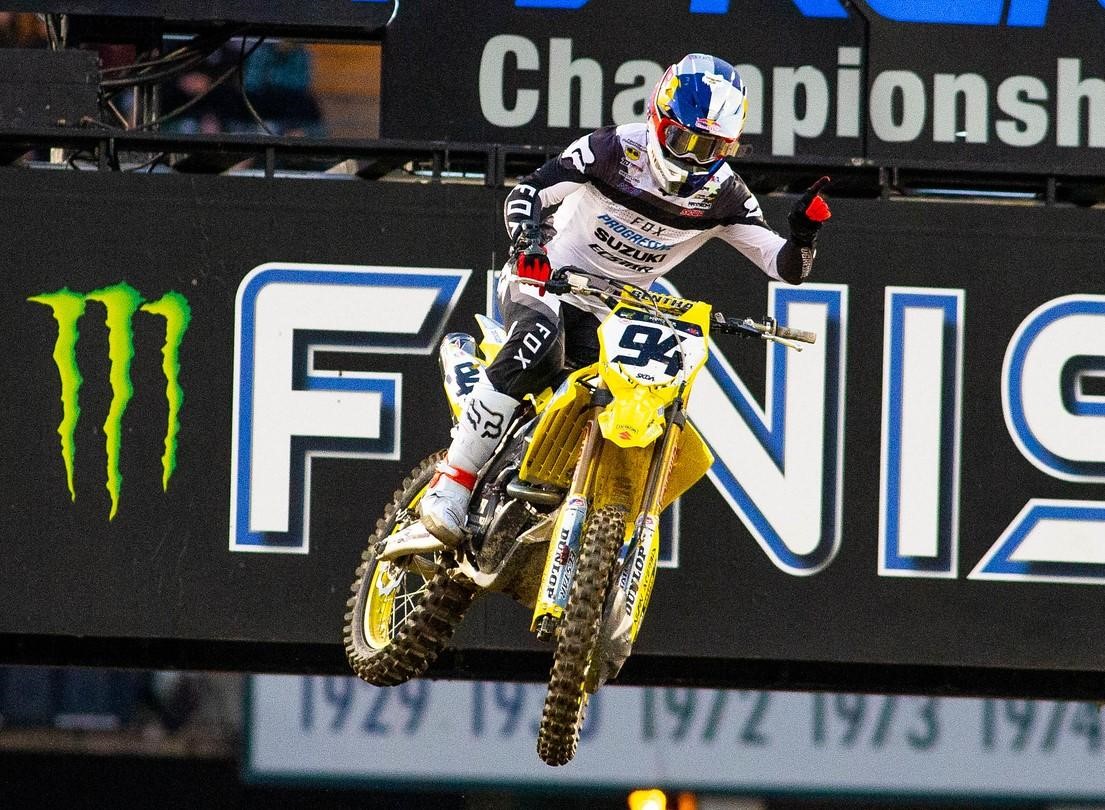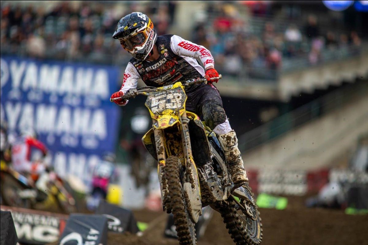 BREA, CA, February 20, 2023 — Ken Roczen seized his first win of 2023 when he led his Oakland Supercross heat race from start to finish aboard his Progressive Insurance ECSTAR Suzuki RM-Z450. Robbie Wageman put his BarX Suzuki RM-Z250 into the lead of his heat race then backed that up with a season-best finish in his main event.