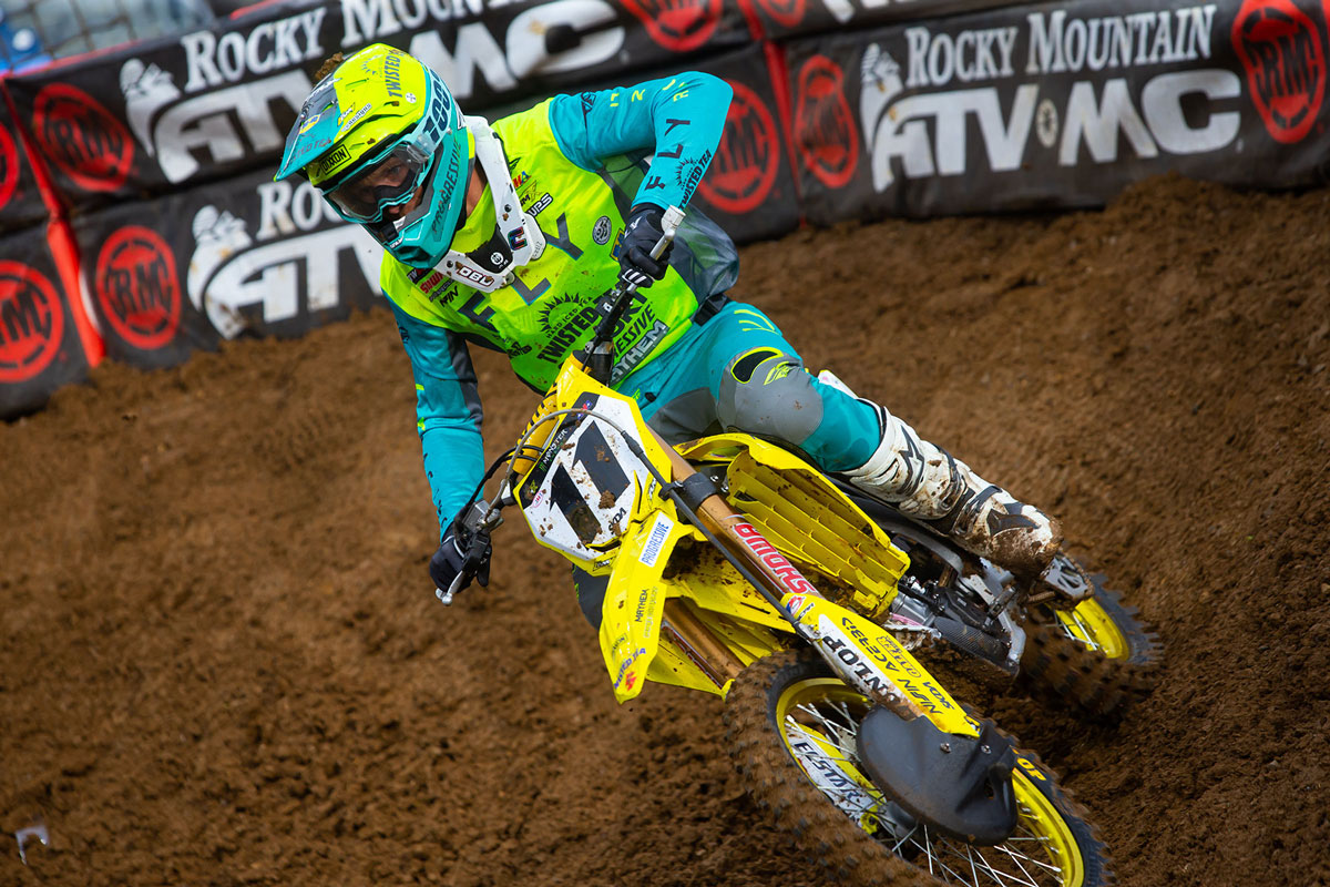 Kyle Chisholm used his Twisted Tea Suzuki RM-Z450's precise throttle response on the track which dried out during the rare daytime Supercross event.