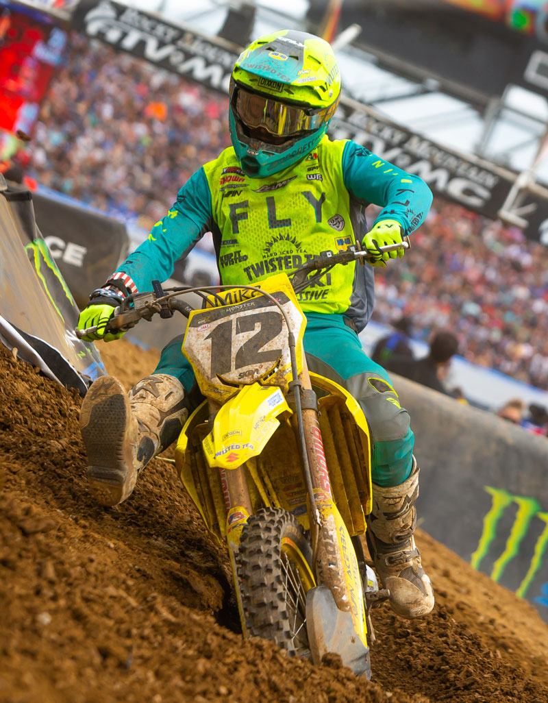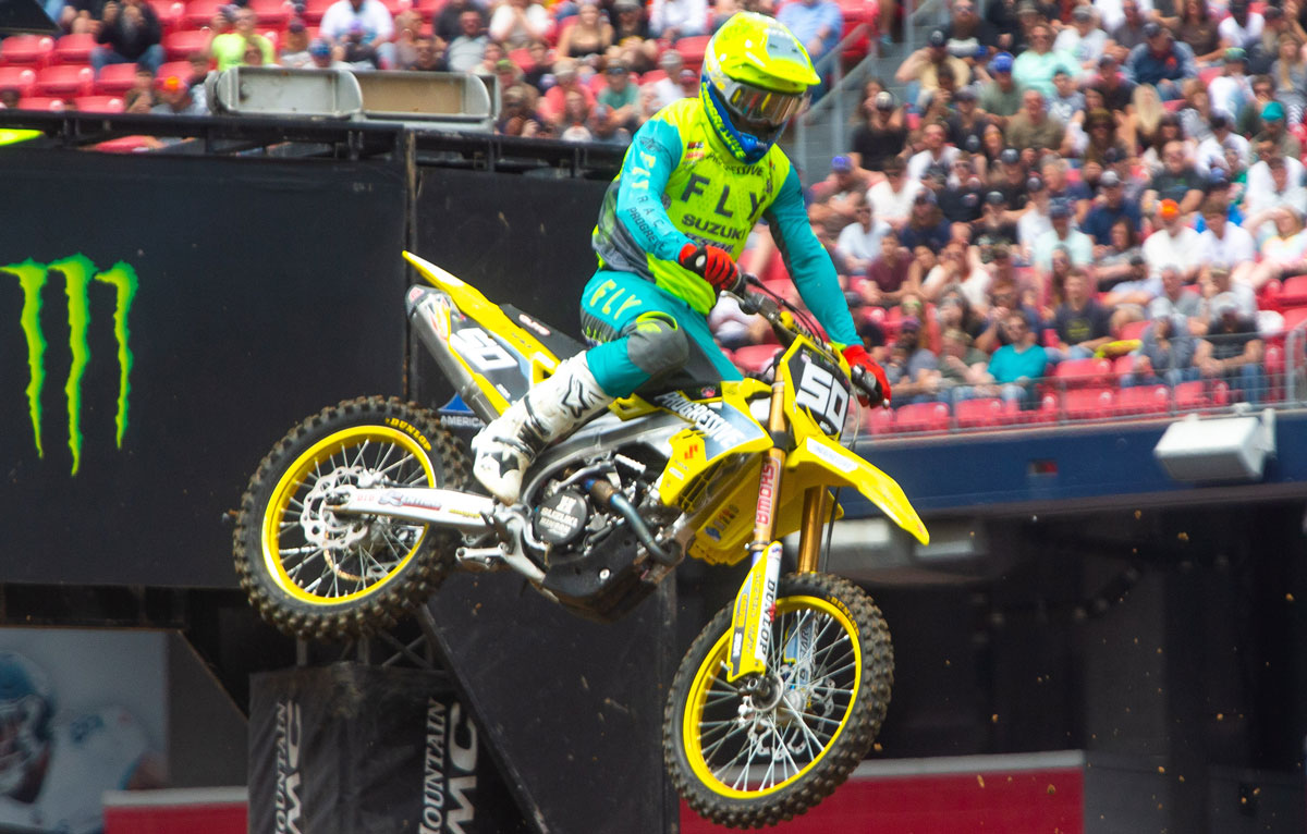 The supercross series marches next to Empower Field at Mile High in Denver, Colorado for round 16 for the 450 class and round 8 for the 250 West racers on March 6th. The Suzuki riders and teams are ready for Denver as well as the season finale inside Rice-Eccles Stadium in Salt Lake City, Utah on May 13th.