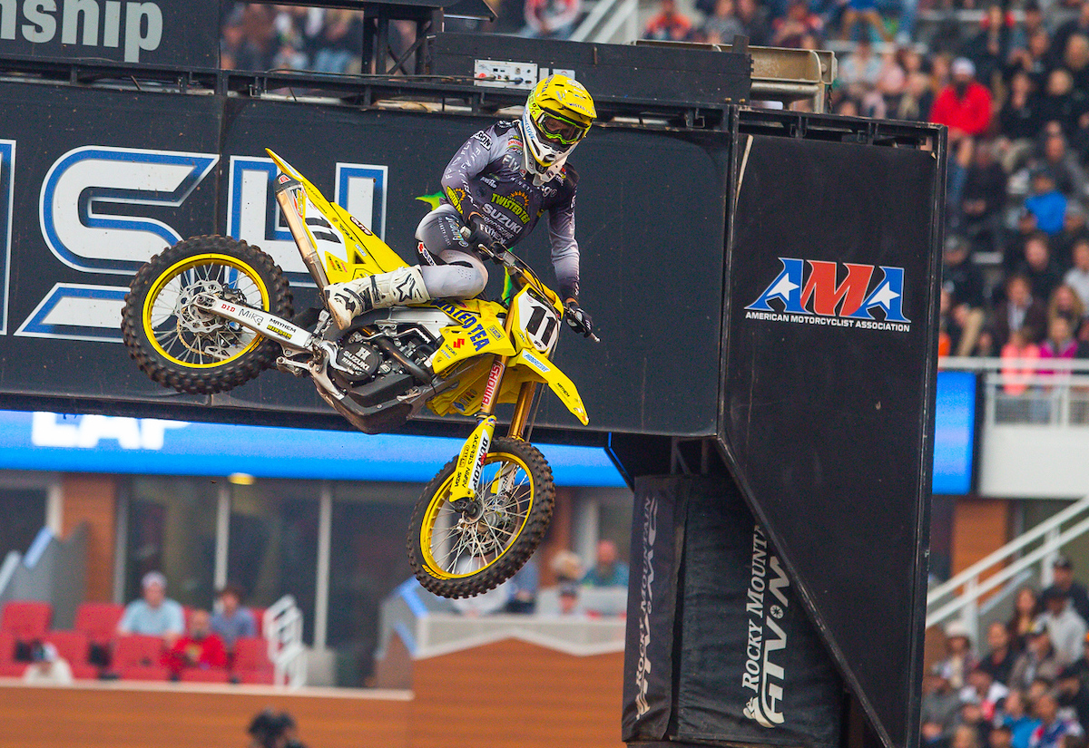 "We did great," said Twisted Tea/H.E.P. Motorsports/Suzuki presented by Progressive Insurance Team Manager Larry Brooks. "Ken Roczen had a rough main. Everything's fine but he twisted and hyper-extended his knee. We think it's twisted, not broken. Kyle Chisholm was up in third place and then finished in fifth. Kyle was riding really well, the best he has all year, and then he ran into a lapped rider, crashed, and finished 14th. Shane McElrath finished seventh. He's made huge improvements all season and finished the season strong. Dilan Schwartz finished thirteenth in the 250 main event. It was an East/West Showdown, and it ended up being a really good night for Dilan. I'm really proud of him. The Supercross series is over and I'm really proud of my whole team. We've brought this team up to another level. We're going to race for the championship next year. I'm super proud of my guys and I couldn't be happier right now."