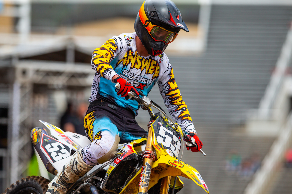 "I started the day off not feeling very well. My Suzuki was impressive, but I just couldn't get a flow and connect the track together," said Chisholm. "Then we had rain before the heat, and I knew the start was important. I nailed the start and ended up third in the heat, which was awesome. In the main, I ripped another good start. I ran third and then settled into fifth. I was wanting to get a top-five tonight. I came up on a lapper and didn't anticipate it well enough; the lapper made a mistake in front of me, and I landed behind him and went down pretty hard. I'm bummed because we were in the top five. But it's racing, and I’m happy to finish the season healthy. The team did great all year.