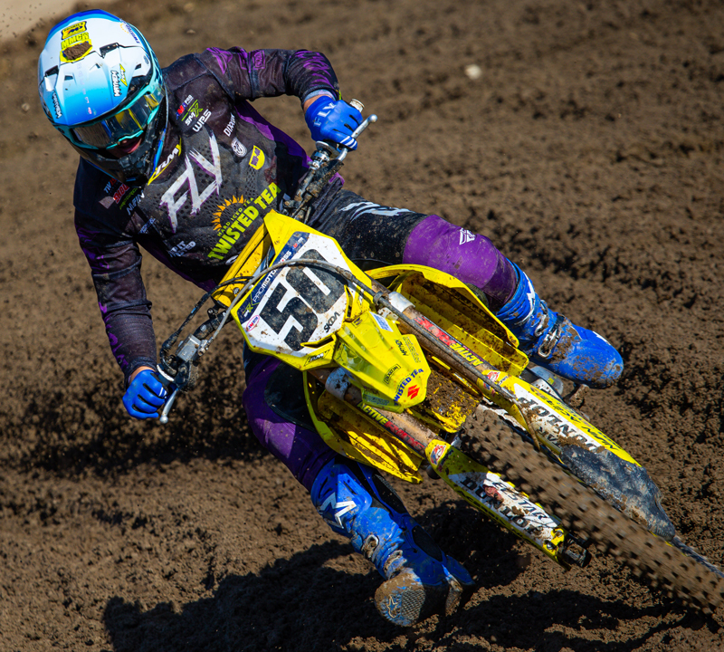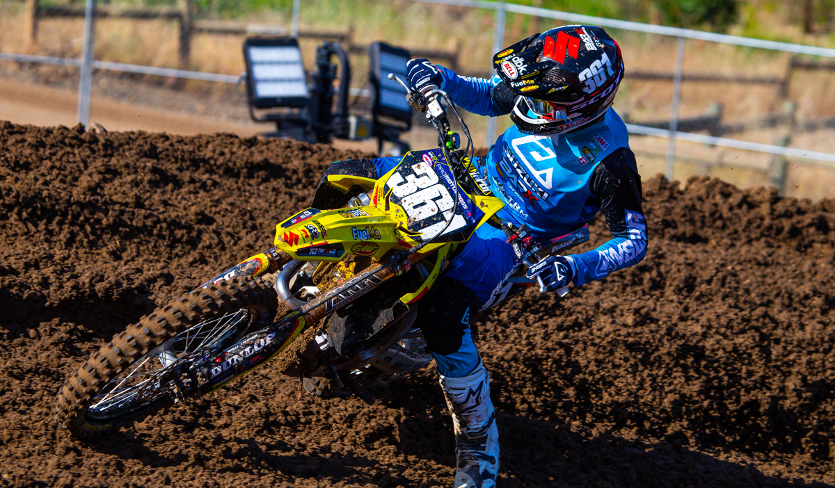 Chase Yentzer pulled good starts in both motos with his BarX Suzuki RM-Z250. The motocross rookie showed great speed on a track that proved unkind to many more experienced riders.