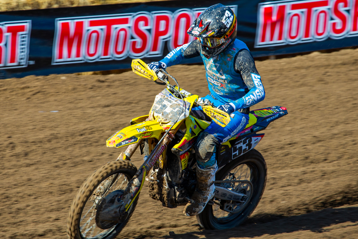 Derek Drake (53) used his Suzuki RM-Z450 to seize his career-best pro motocross result, tying his career-best supercross result.