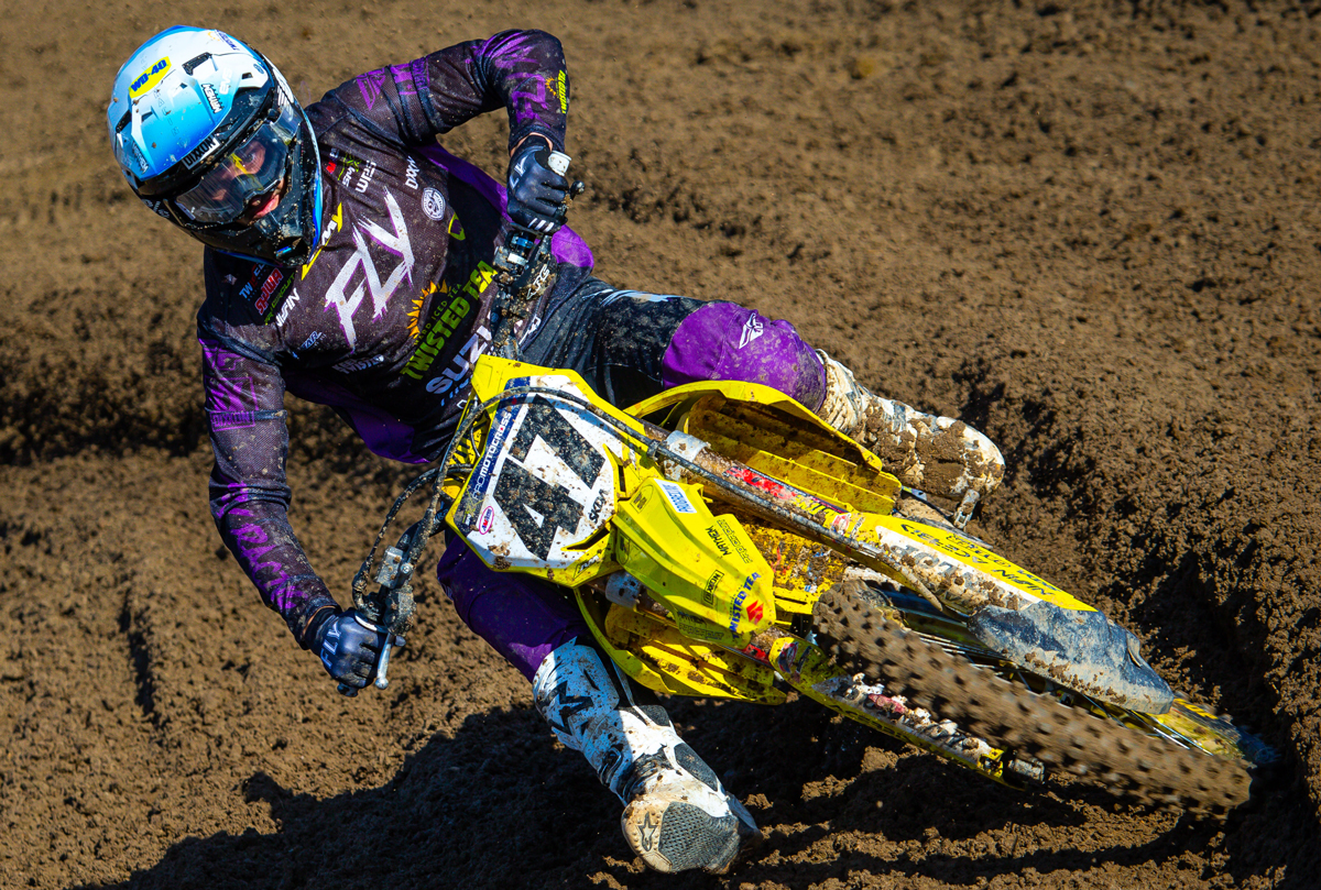 Kyle Chisholm (11) and his RM-Z450 were fast and steady on a slick, challenging track.