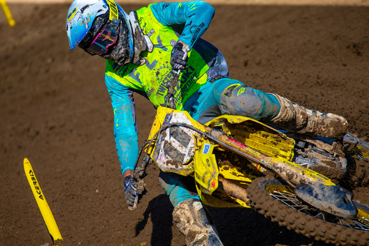 Freddie Noren was the sixth-fastest rider out of qualifying and translated that into a sixth-place result in moto one. Some early troubles in moto two forced Fast Freddie to charge through the pack. Noren persevered for an eleventh overall and earned enough points to move his Twisted Tea Suzuki RM-Z450 into the top ten in the championship standings.