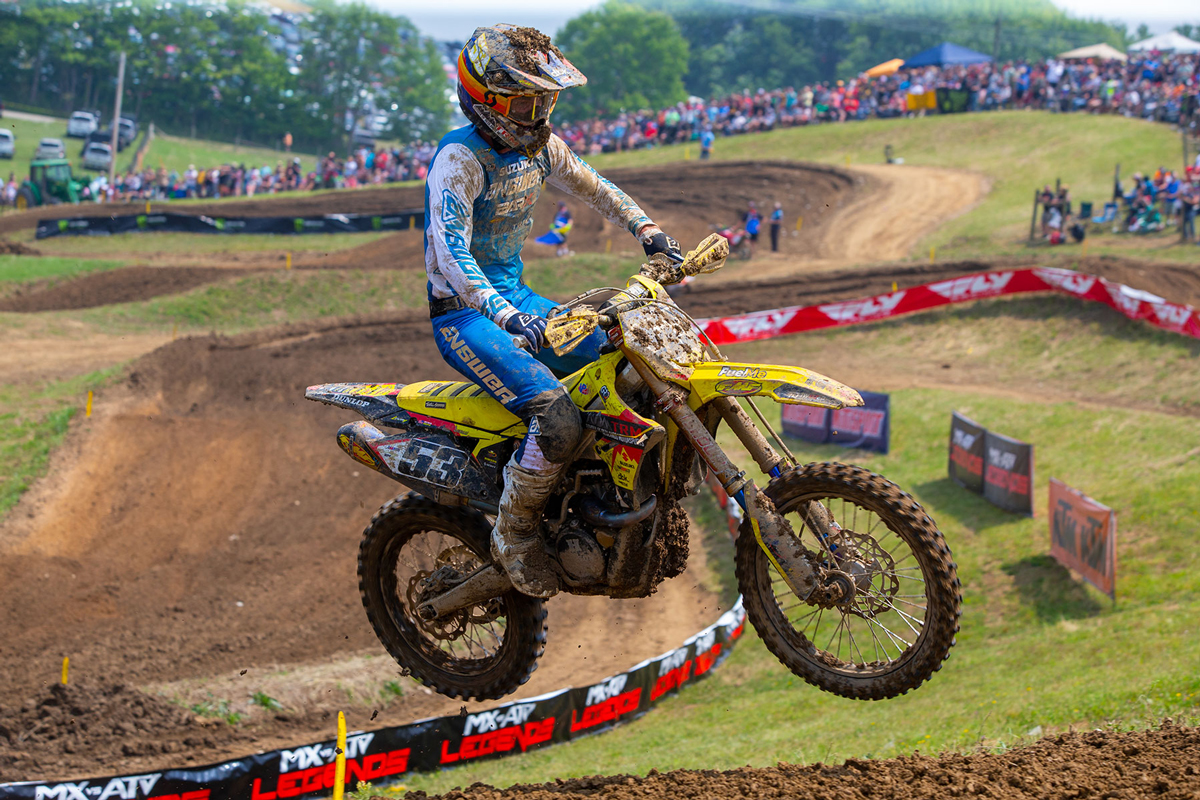 BREA, CA, June 19, 2023 — Progressive Insurance ECSTAR Suzuki's Ken Roczen shook up the AMA Pro Motocross season with an incredible performance at round four of the 11-round summer series. Roczen took a break from his preparation to defend his World Supercross Championship title to land a second-place result at High Point Raceway in Mt. Morris, PA. Heavy rains before the event created deep ruts, thick mud, and hard-slick patches on the natural-terrain track making for difficult conditions.