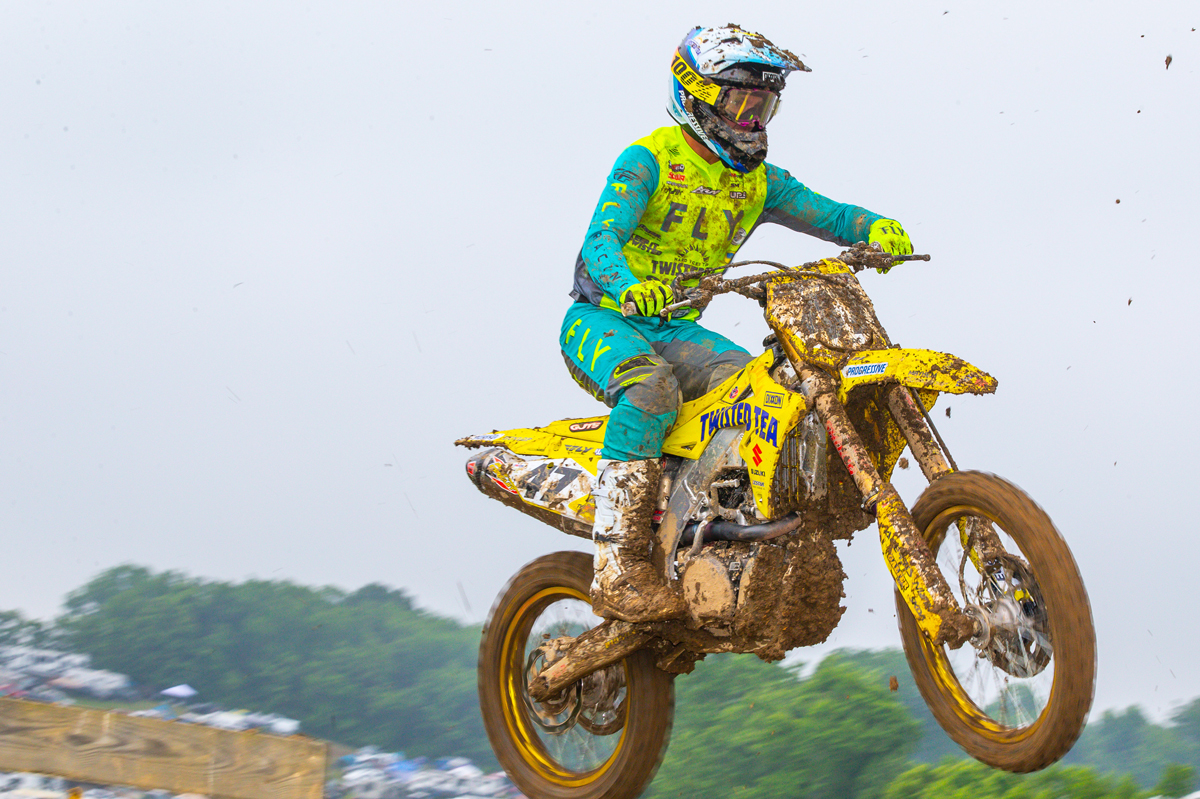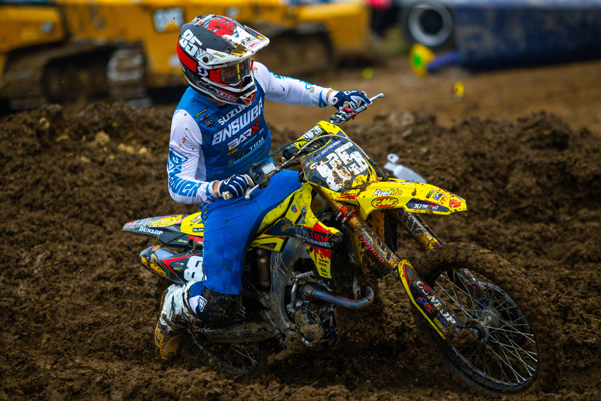 Twisted Tea Suzuki's Freddie Noren was the rider on the move in the first moto. He finessed his RM-Z450 through the long ruts to pass 26 racers. In the second moto, Noren raced into the top-ten early and held on for another top ten moto finish.