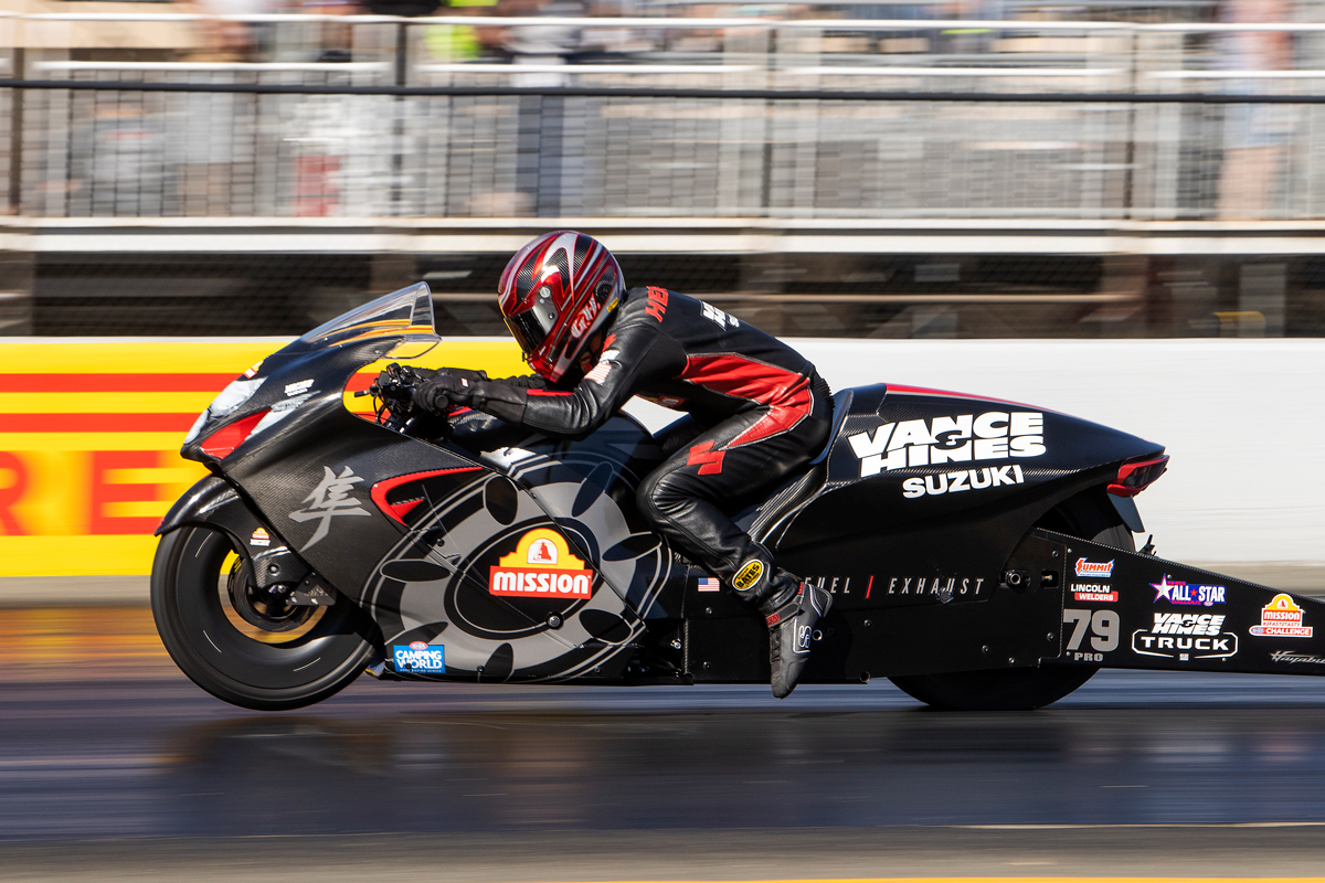 The Vance & Hines/Mission Suzuki team is back in action August 30 - September 4 at the Dodge Power Brokers NHRA U.S. Nationals at Lucas Oil Indianapolis Raceway Park in Indianapolis, IN.