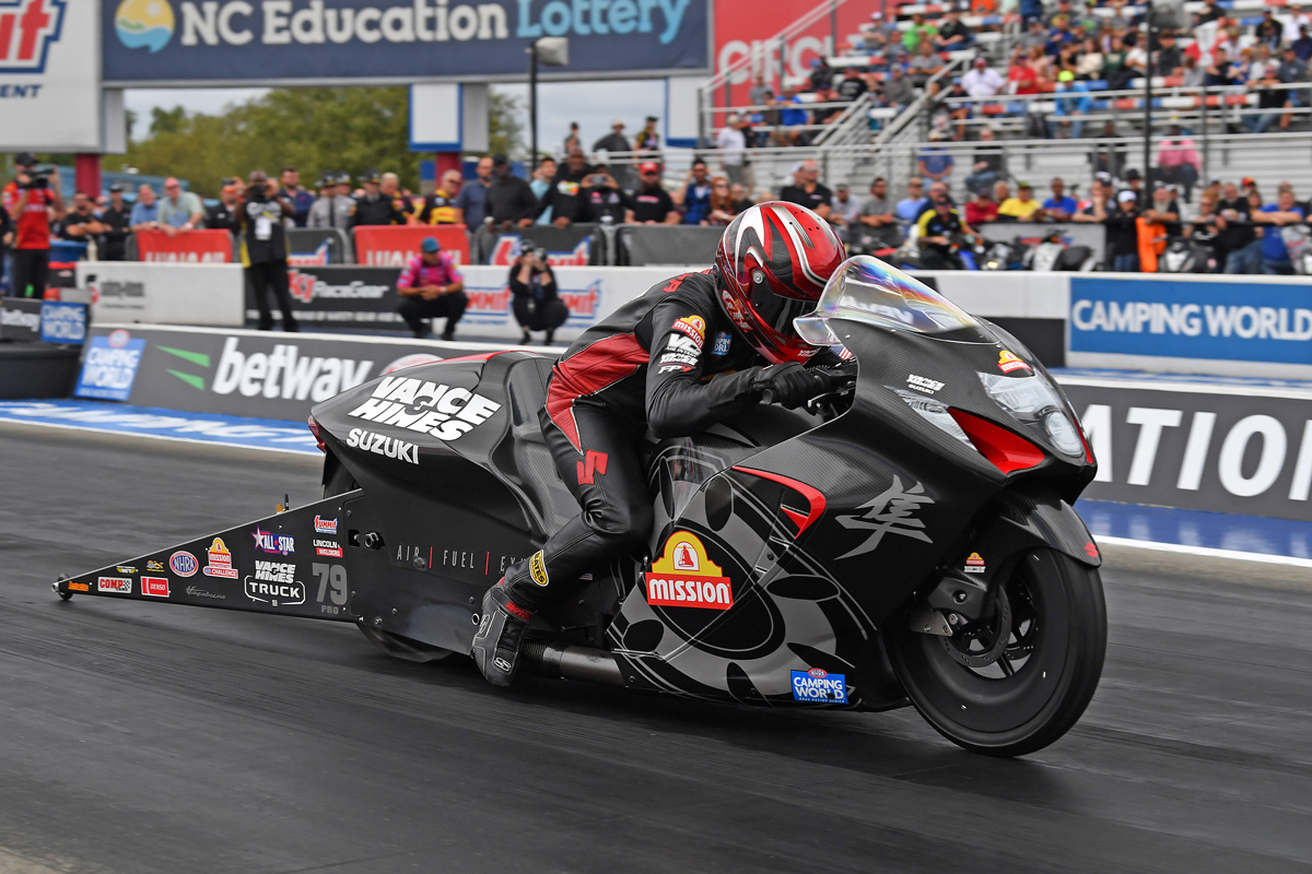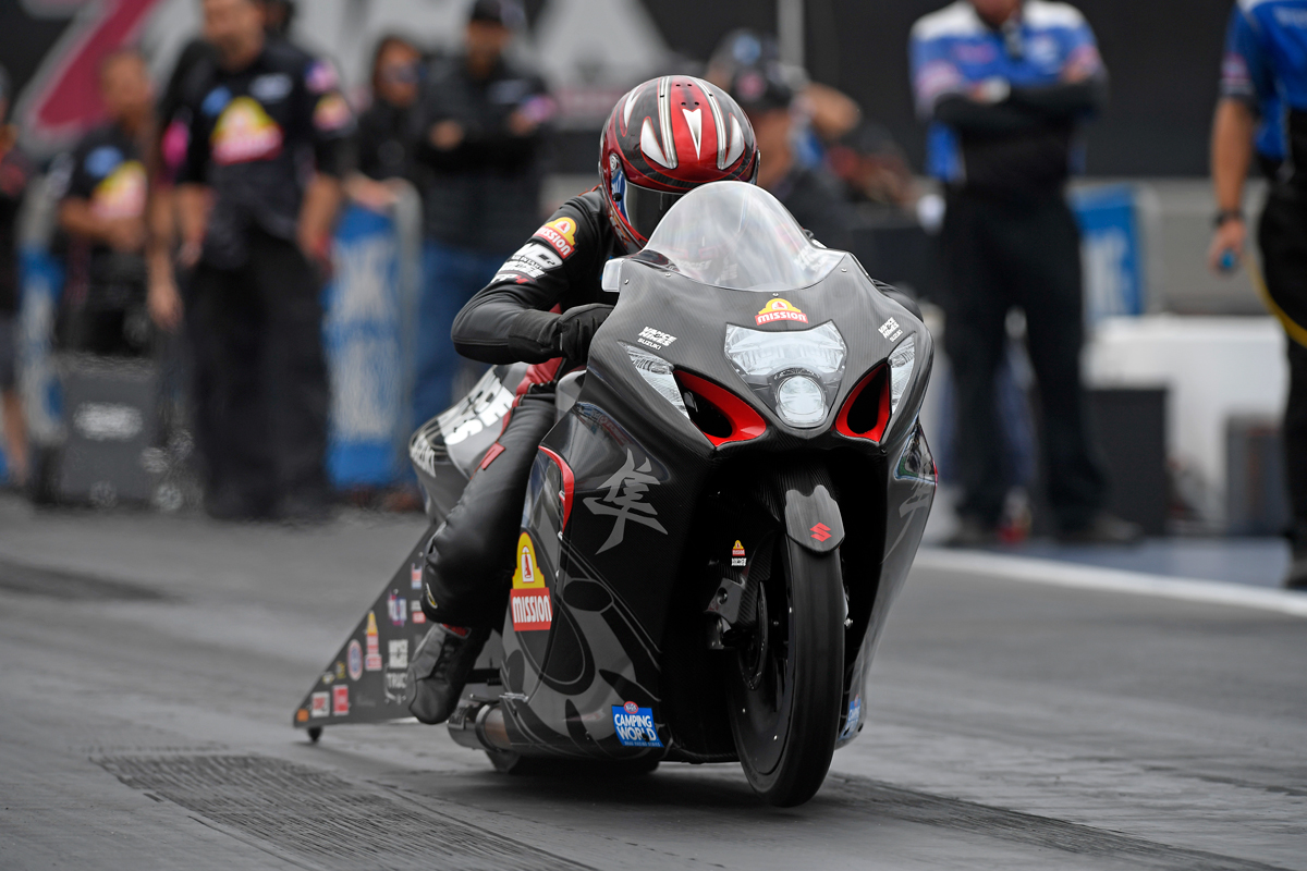 The Vance & Hines/Mission Suzuki team is back in action Sept. 29-Oct. 1 at the NHRA Midwest Nationals at the World Wide Technology Raceway in Madison, IL.