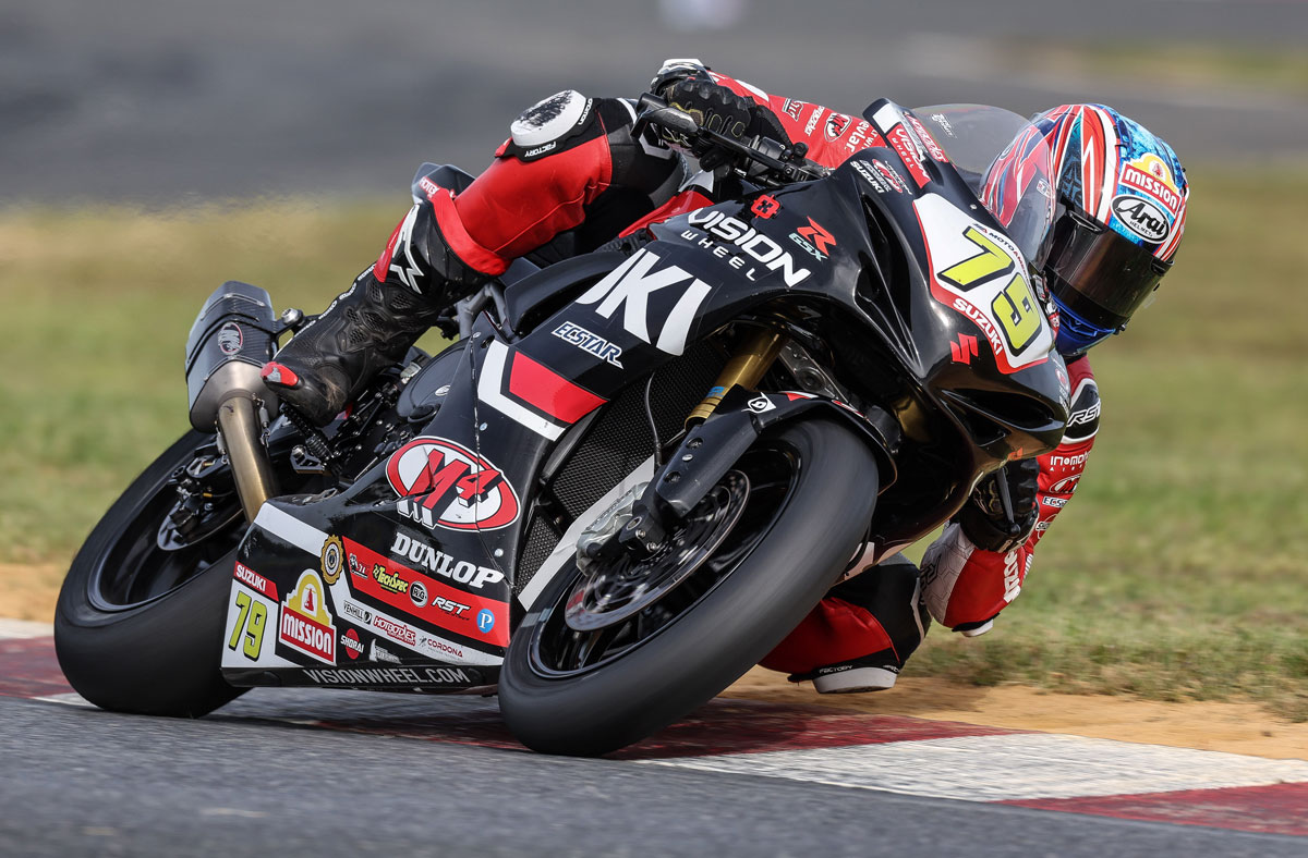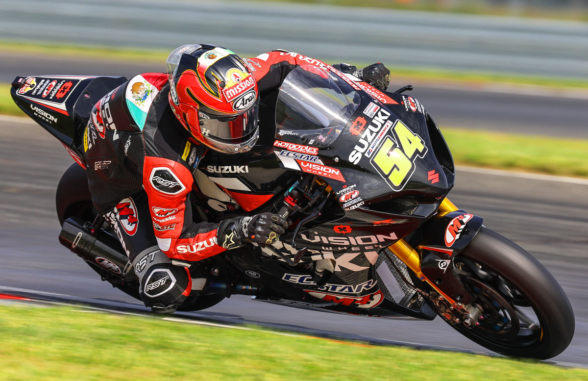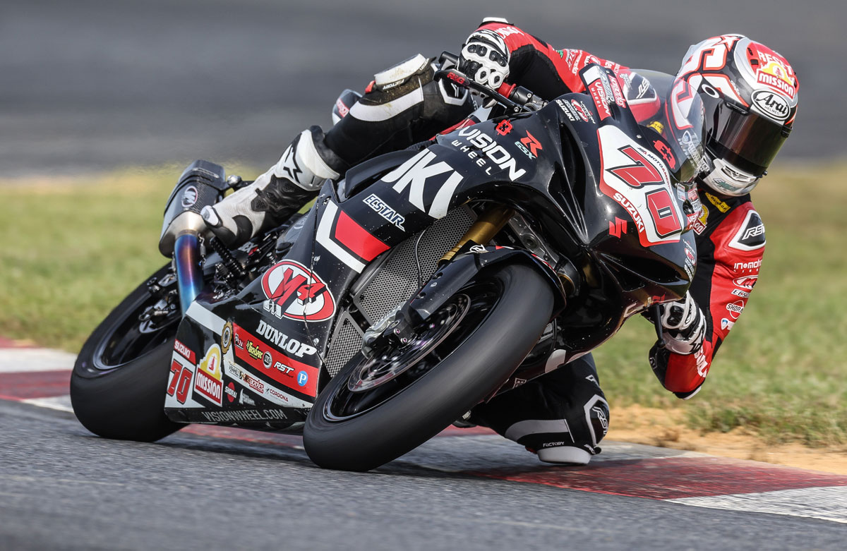 Brandon Paasch (96) ended Saturday’s race on the ground, but showed remarkable tenacity and rebounded with a solid Superbike class performance on Sunday. The local rider saved his best for the end as he put his Vision Wheel M4 ECSTAR Suzuki GSX-R1000R in the top five on the last lap. Paasch chased teammate Richie Escalante for most of the race but was able to make the move to finish once again in the top five.