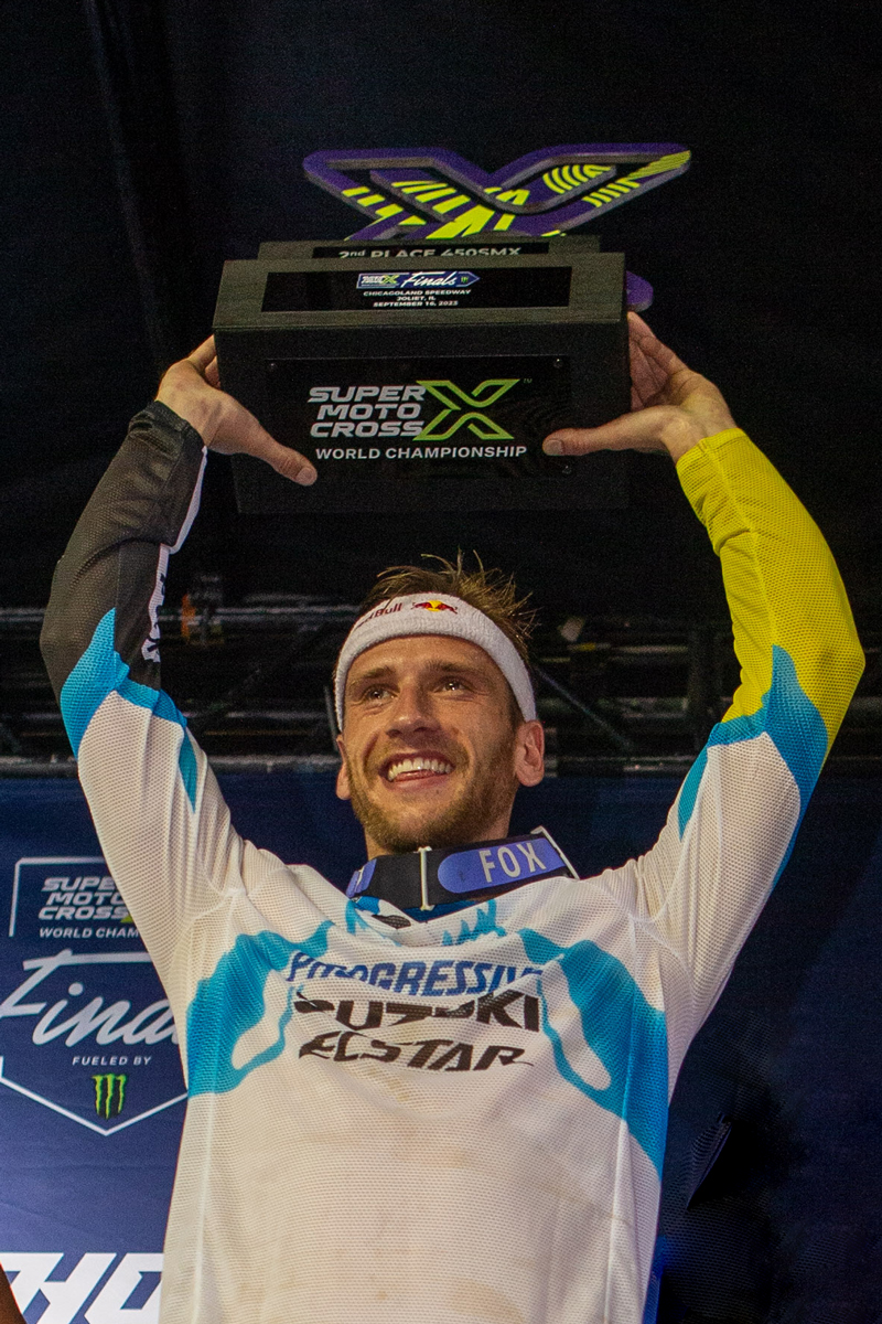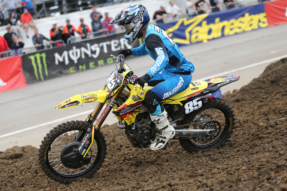 After topping morning qualifying with the fastest lap time, Ken Roczen and his Suzuki RM-Z450 earned a third-place result in the first moto of the two-moto race format. All eyes were on Roczen in the second moto after he started charging forward immediately after a fifth-place start. Two minutes into the 20-minute plus one-lap race, Roczen held second and was pressuring the leader. The two front runners separated from the pack as Roczen mounted several challenges for the lead throughout the moto. With less than two minutes left on the race clock, Roczen closed in and was searching for a way into the lead. In a controversial moment, the moto leader relinquished the lead, and Roczen pulled away for the moto win and a second-place overall finish. The night's points moved Roczen up two positions in the championship standings, into third place and just ten points out of the lead. With a nine-point swing given to the Final winner; Roczen has a reasonable shot at another championship aboard his Suzuki RM-Z450.