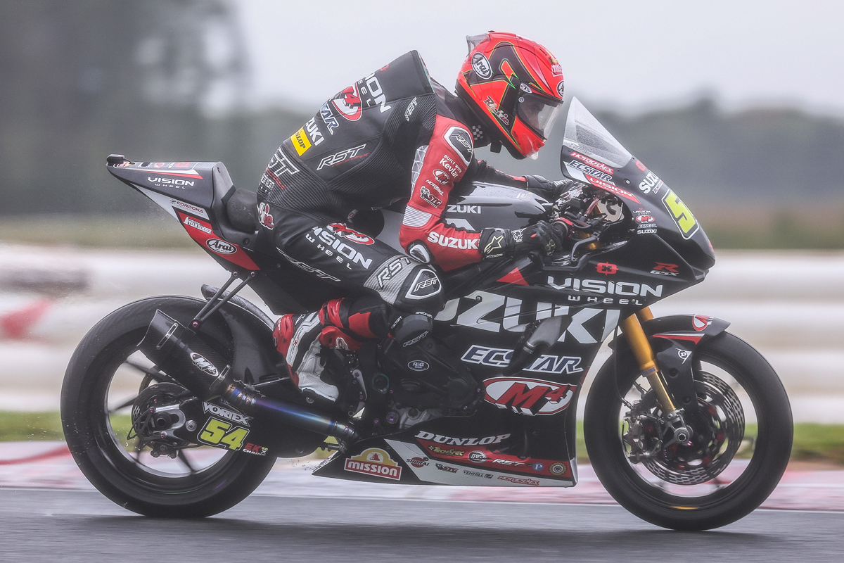 “We were in the race lead, but I wanted to keep pushing the pace,” Scott continued. “I knew everyone else may have caught up if I wasn’t pushing. The track conditions got worse, lap-by-lap. The whole Vision Wheel M4 ECSTAR Suzuki team has done a great job. I’m happy with my Suzuki and happy with the team. It’s cold and rainy, but I’m thrilled to see everyone here.”