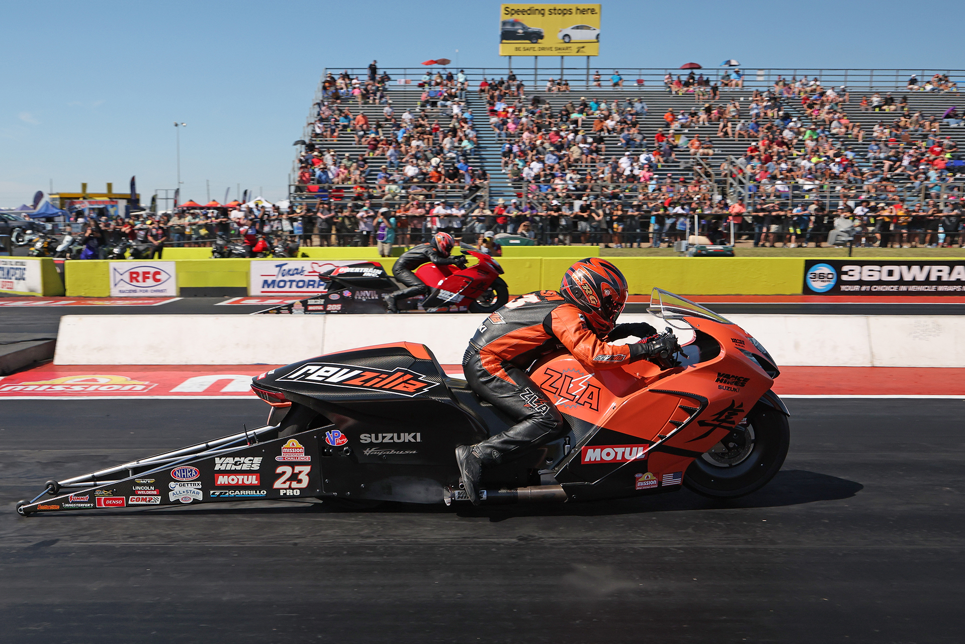 The RevZilla/Motul/Vance & Hines Suzuki team returns to action Oct. 30-Nov. 3 at the Dodge NHRA Nevada Nationals powered by Direct Connection at The Strip at Las Vegas Motor Speedway in Las Vegas, NV.