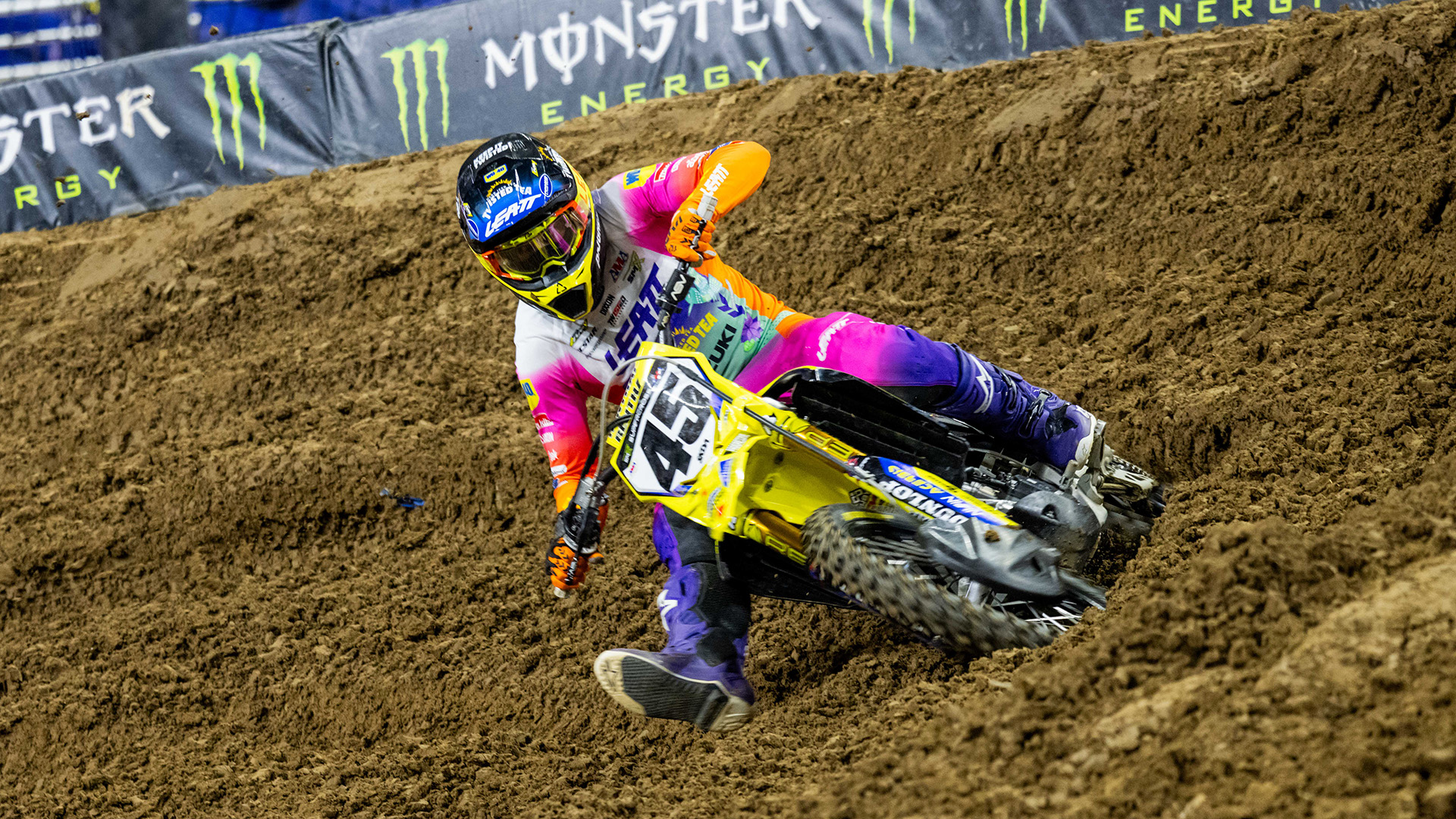 Brea, CA – (April 6, 2026) – Round 12 of the Monster Energy AMA Supercross season delivered exciting action at the annual Love Moto Stop Cancer race in St. Louis, Missouri. Unique bike graphics and riding gear designs represented the continuing partnership with St. Jude Children’s Research Hospital. The dirt inside The Dome at America’s Center was softer and tackier than anticipated. The soil initially provided great traction, but track conditions deteriorated dramatically throughout the racing.