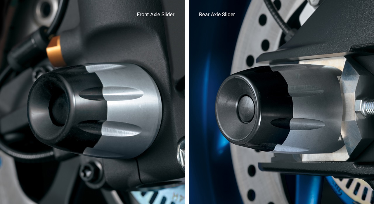 A Suzuki Exhaust Tuning (SET) valve manages flow from the mid-chamber into the muffler, while the sculpted muffler has a pleasing appearance that’s uncommon to under-chassis exhausts and creates an exciting, distinctive sound that won’t overpower the rider and passenger’s senses.