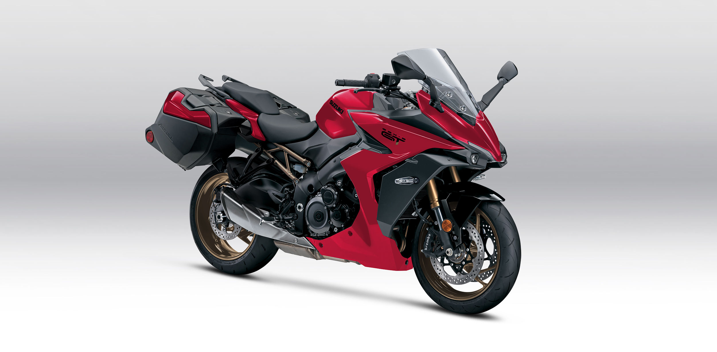 - Painted panels on the side case lids integrates the luggage to the motorcycle, providing a perfect match to the GSX-S1000GT+ body colors.
