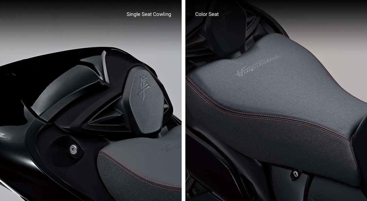 The passenger seat and grab rail can be replaced by an optional, color matched single seat cowl that acts as a lumbar stop for the rider during solo rides while adding to the Hayabusa’s performance-related style.