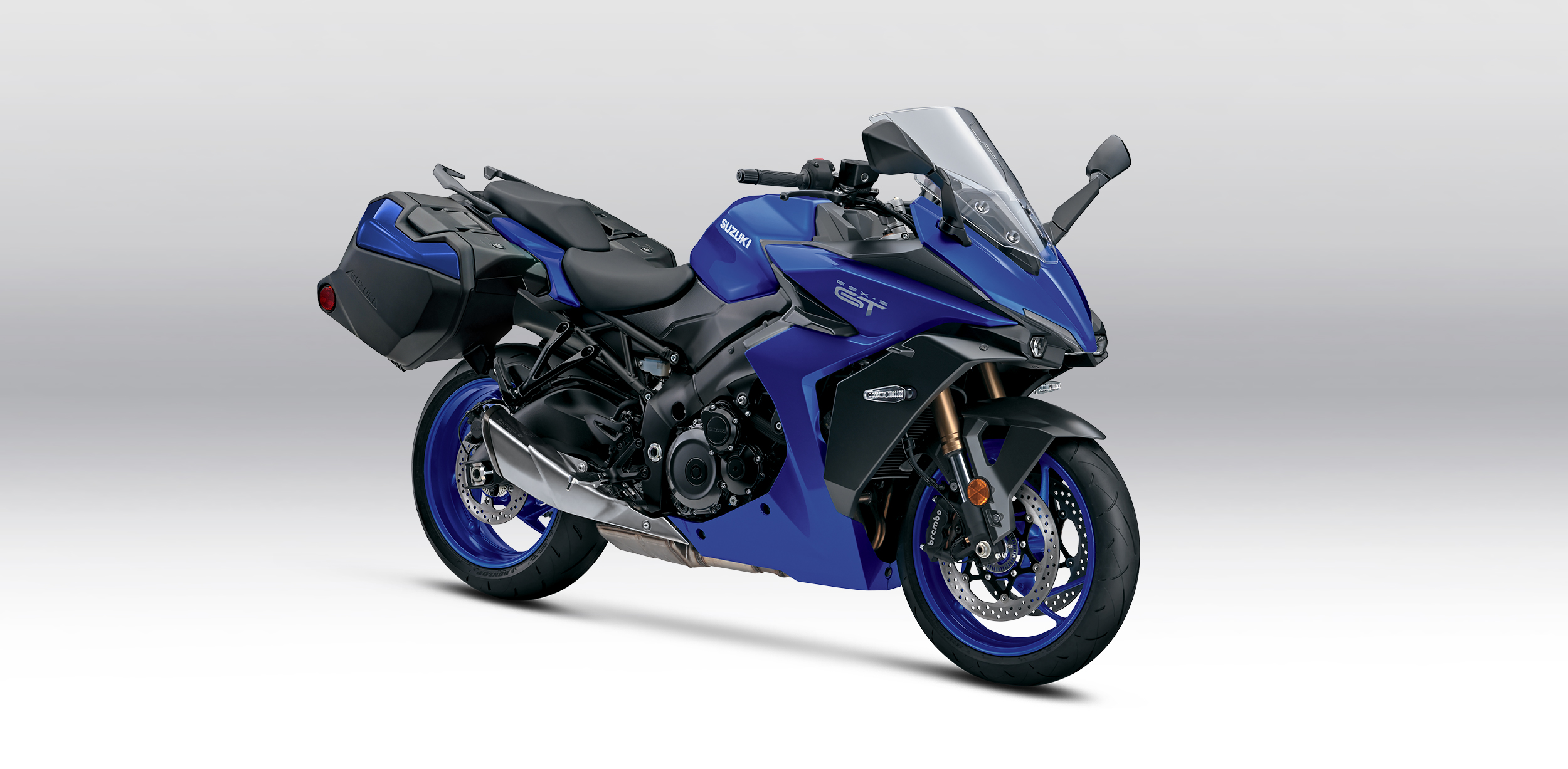 Unique to GSX-S1000 models, the TRP six-spoke, lightweight, cast-aluminum wheels look great and contribute to the bike’s nimble handling and sporty performance. Dunlop’s Roadsport 2 radial tires were custom-engineered to perform optimally on the GSX-S1000GT+, providing great grip in dry or wet conditions, faster warm-up, and long tread life.