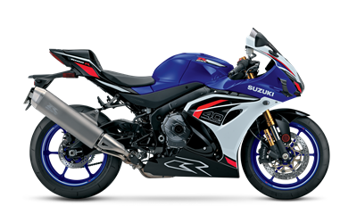 The new Grand Blue and Solid Black or the returning Solid Special White No. 2 bodywork with angular graphics complement the motorcycle’s styling.