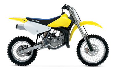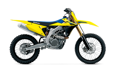 Long travel, Showa inverted front fork is derived from the RM250 and features adjustable compression/rebound damping and a special coating on inner tube surfaces for smooth action.